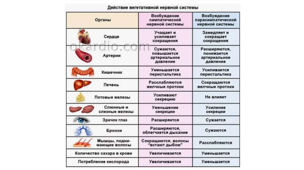 16. 4. ВЛИЯНИЕ СИМПАТИЧЕСКОГО И ПАРАСИМПАТИЧЕСКОГО ОТДЕЛОВ ВЕГЕТАТИВНОЙ НЕРВНОЙ СИСТЕМЫ НА ОРГАНИЗМ