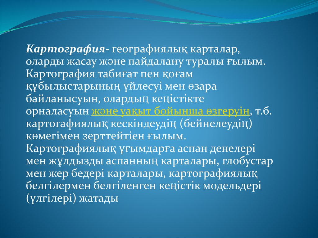 Картография- географиялық карталар,оларды жасау және пайдалану туралы ғылым.