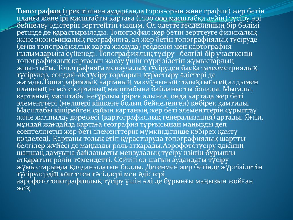 ғылымдарына сүйенеді. Топографиялық түсіру –белгілі бір участкенің