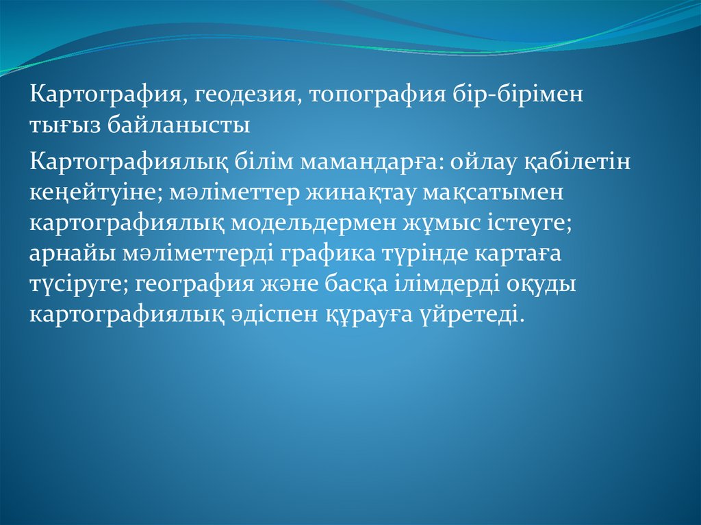 (яғни топографиялық карта жасауда) геодезия мен картография