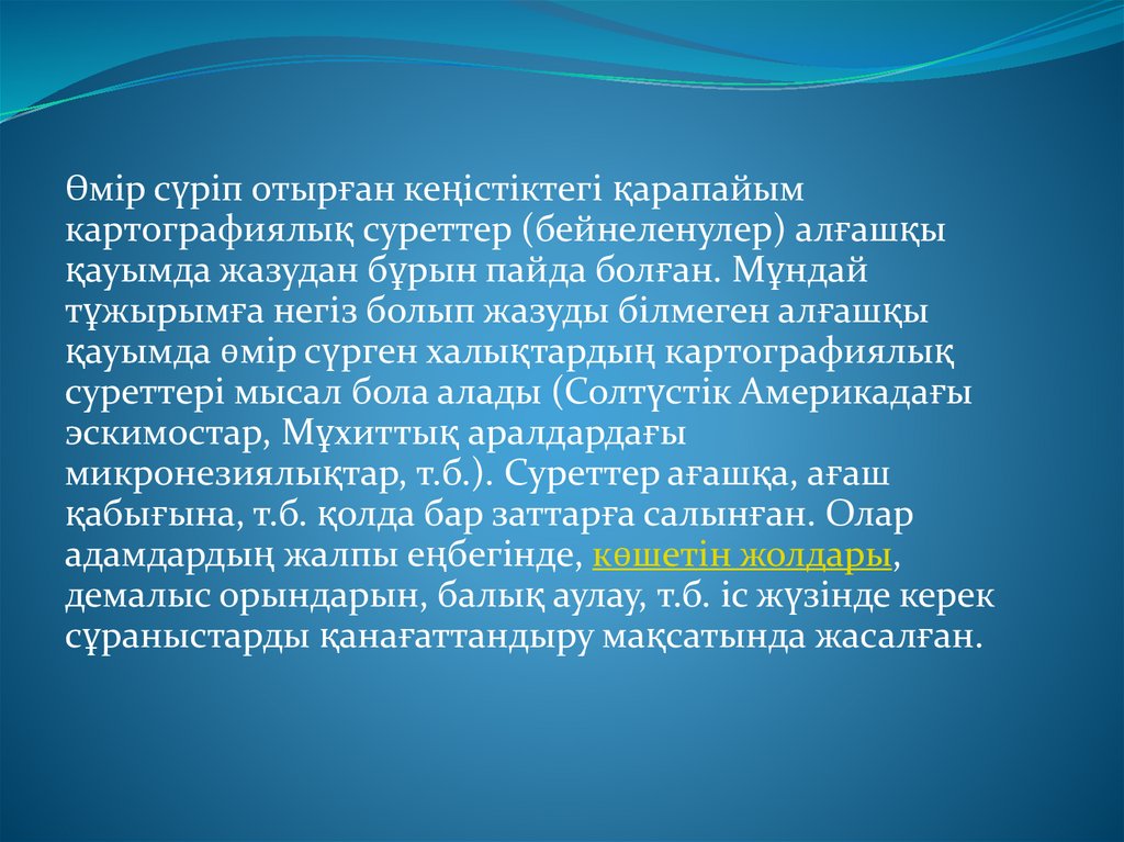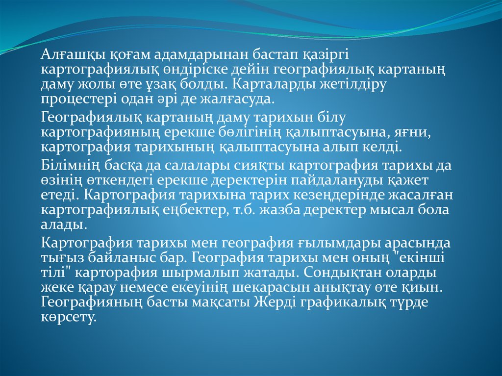 Алғашқы қоғам адамдарынан бастап қазіргікартографиялық өндіріске дейін географиялық картаның