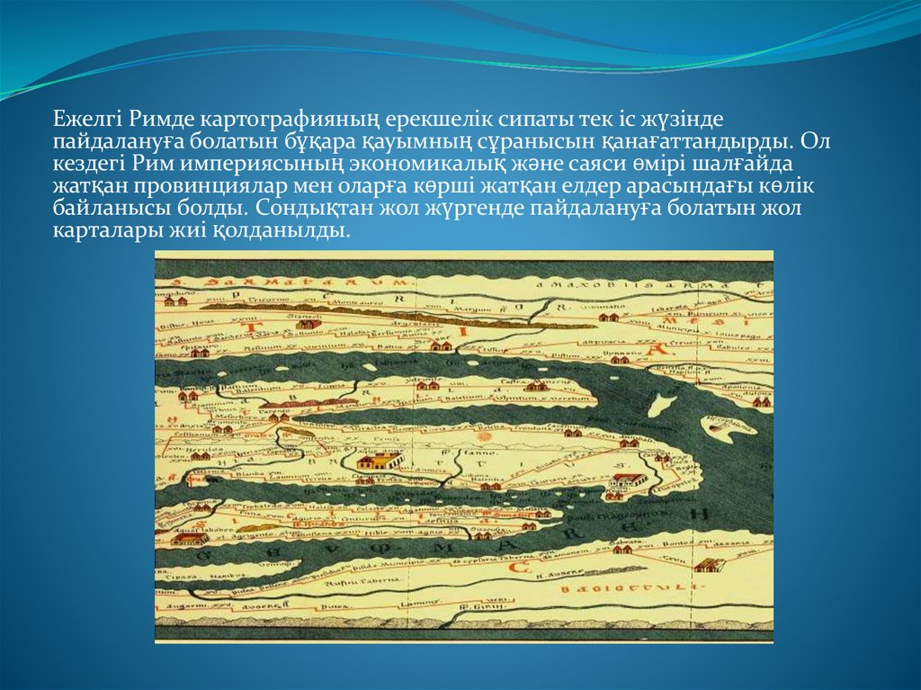 Ежелгі Римде картографияның ерекшелік сипаты тек іс жүзіндепайдалануға болатын бұқара қауымның сұранысын қанағаттандырды. Ол