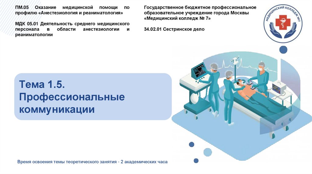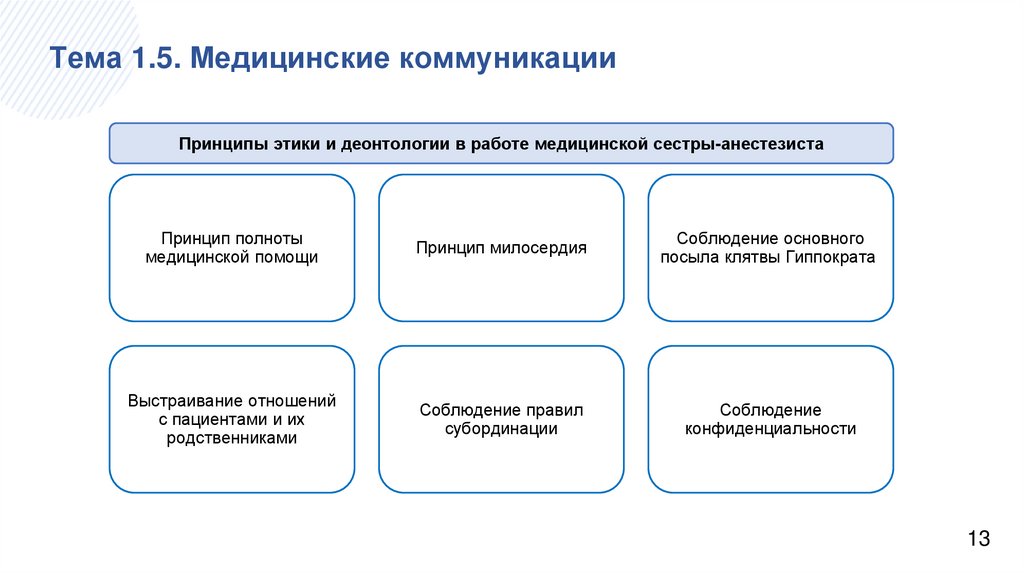 Тема 1.5. Медицинские коммуникацииПринципы этики и деонтологии в работе медицинской сестры-анестезиста