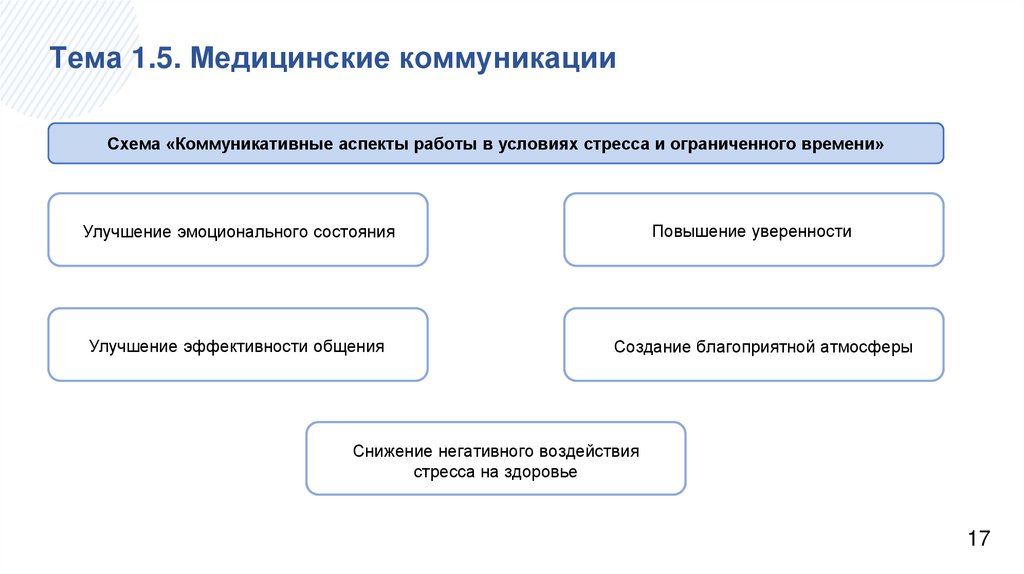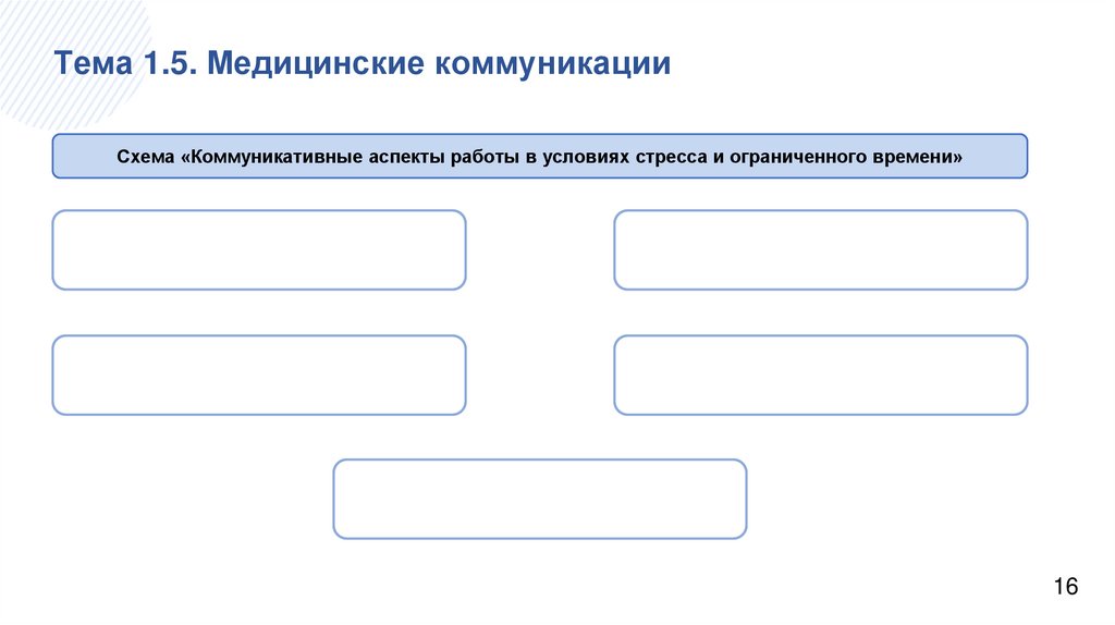 Тема 1.5. Медицинские коммуникацииСхема «Коммуникативные аспекты работы в условиях стресса и ограниченного времени»