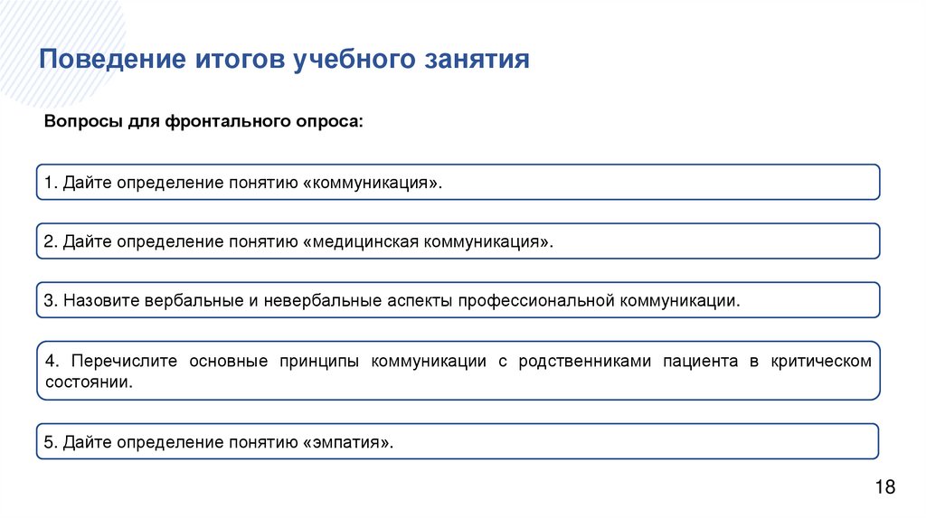 Поведение итогов учебного занятияВопросы для фронтального опроса: