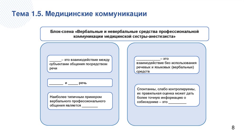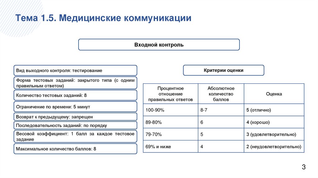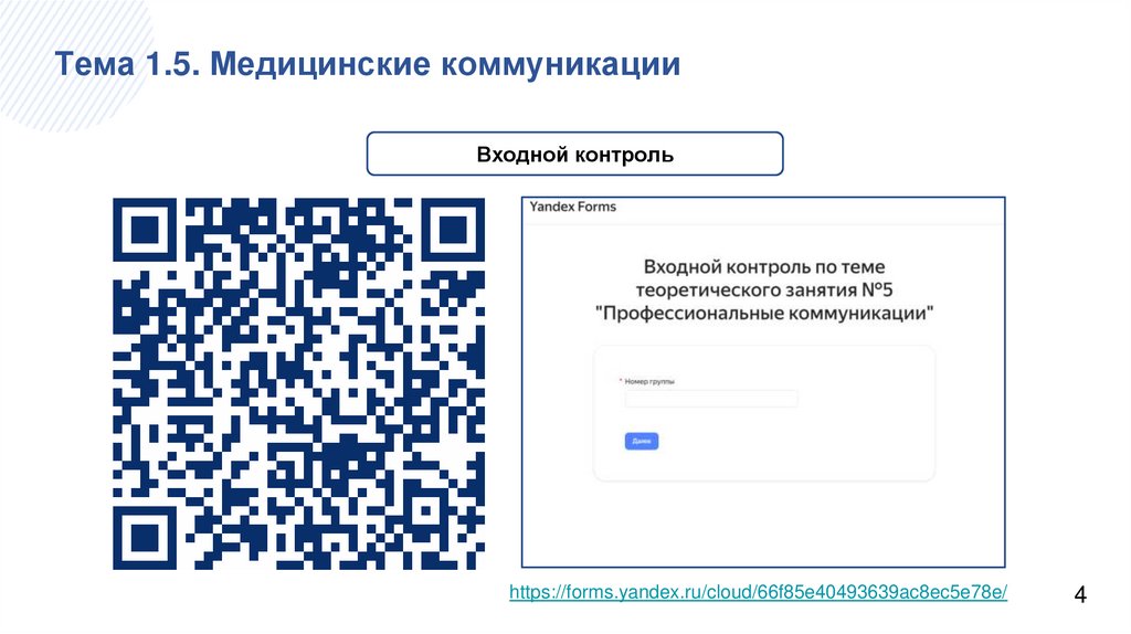 Тема 1.5. Медицинские коммуникацииВходной контроль