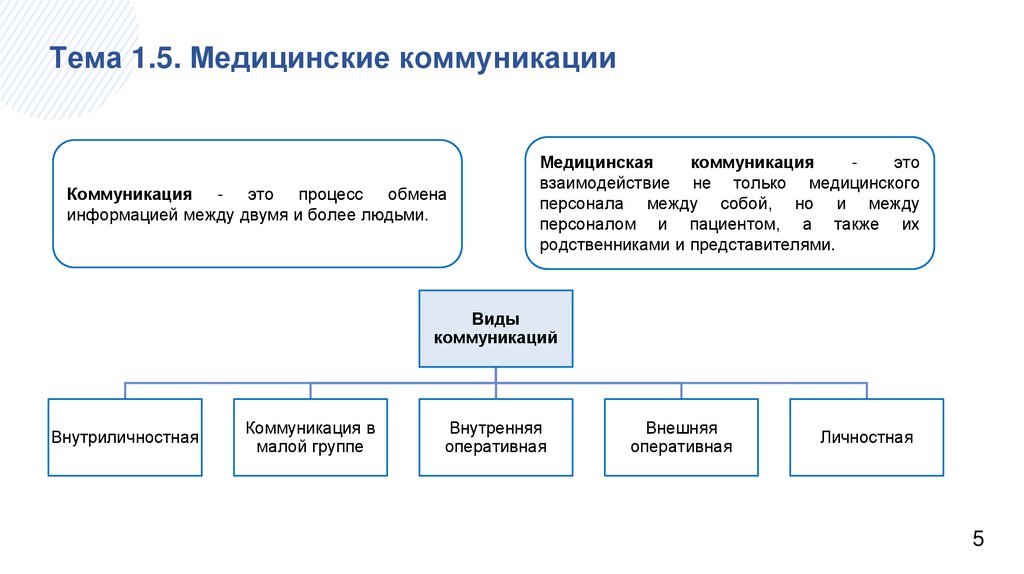 Тема 1.5. Медицинские коммуникацииОсновы психологии общения в контексте работы медицинской