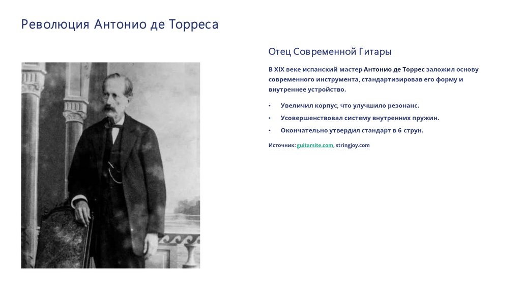 В XIX веке испанский мастер Антонио де Торрес заложил основу