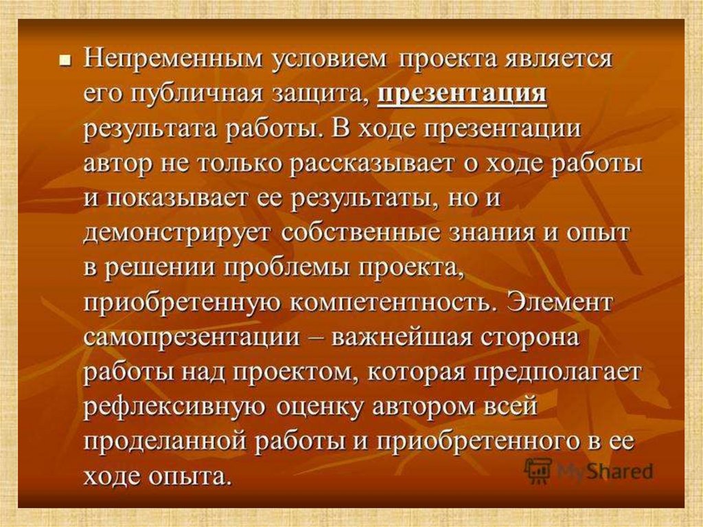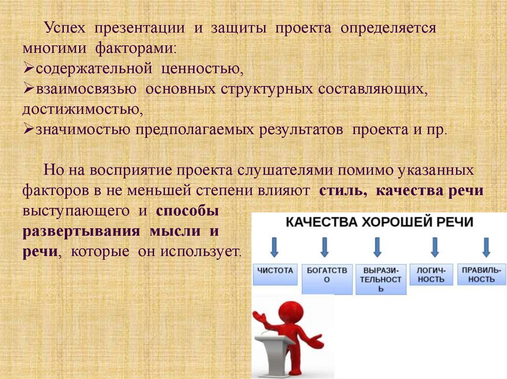 Успех презентации и защиты проекта определяетсямногими факторами: