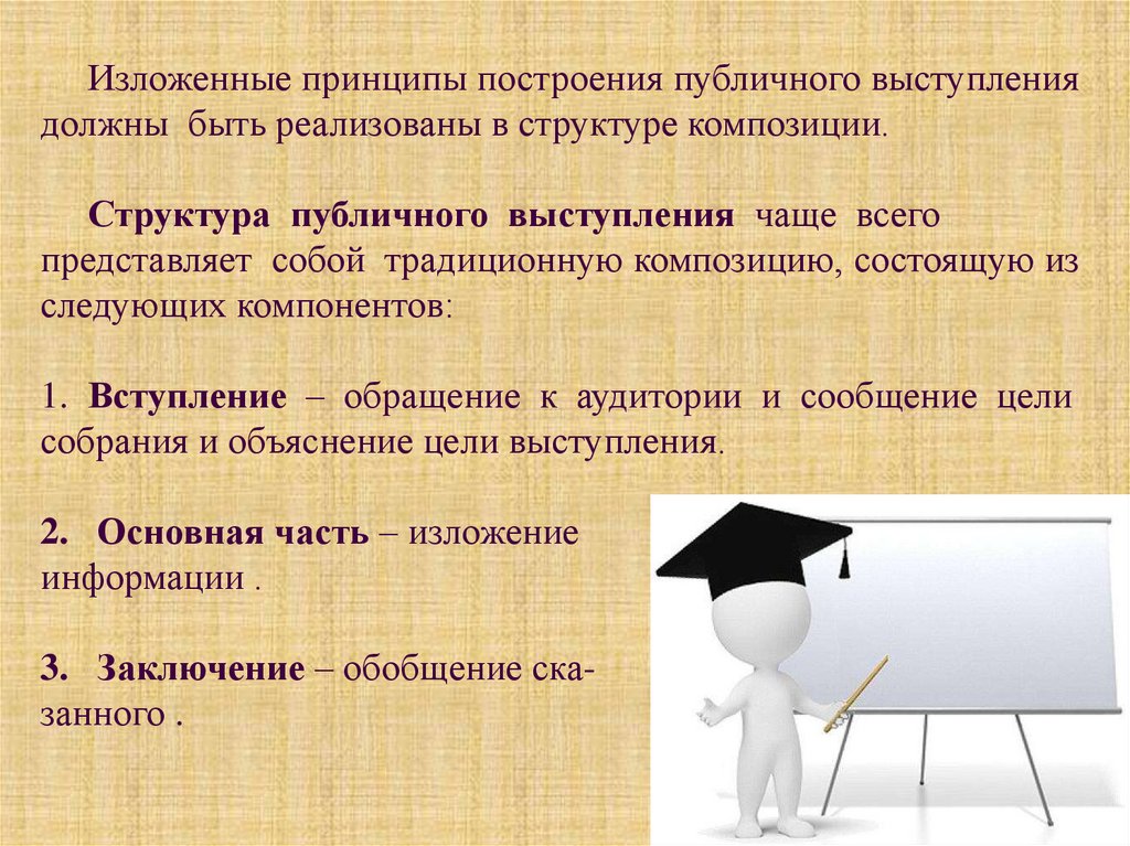 Изложенные принципы построения публичного выступлениядолжны быть реализованы в структуре композиции.