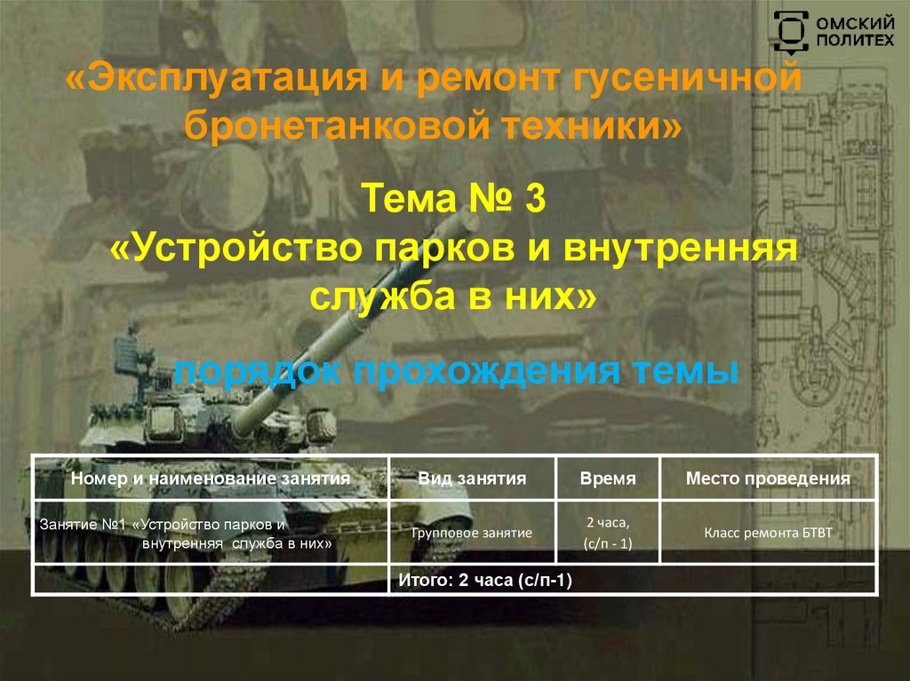 Учебная дисциплина:«Эксплуатация и ремонт гусеничной бронетанковой техники»