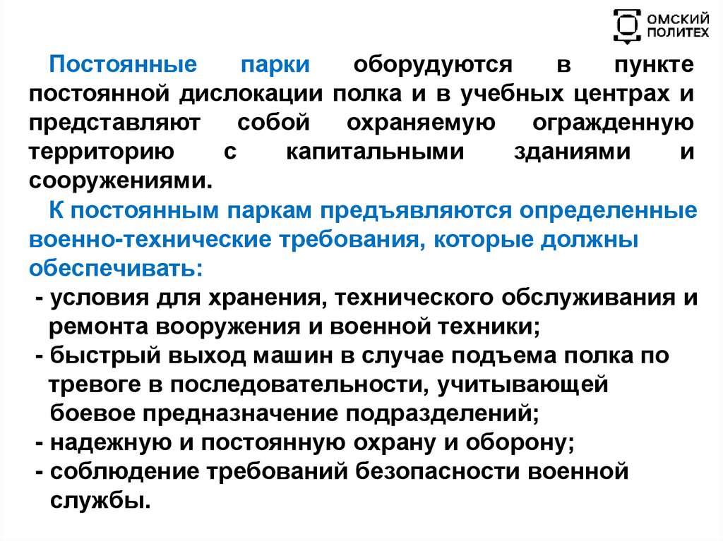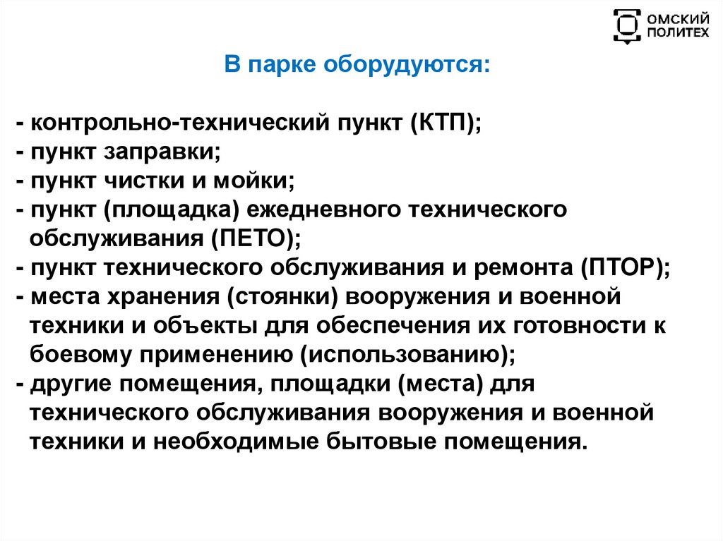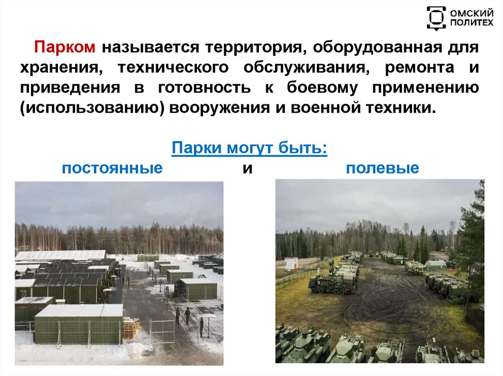 Парком называется территория, оборудованная дляхранения, технического обслуживания, ремонта и