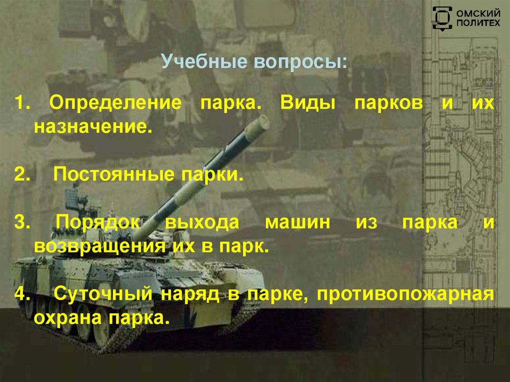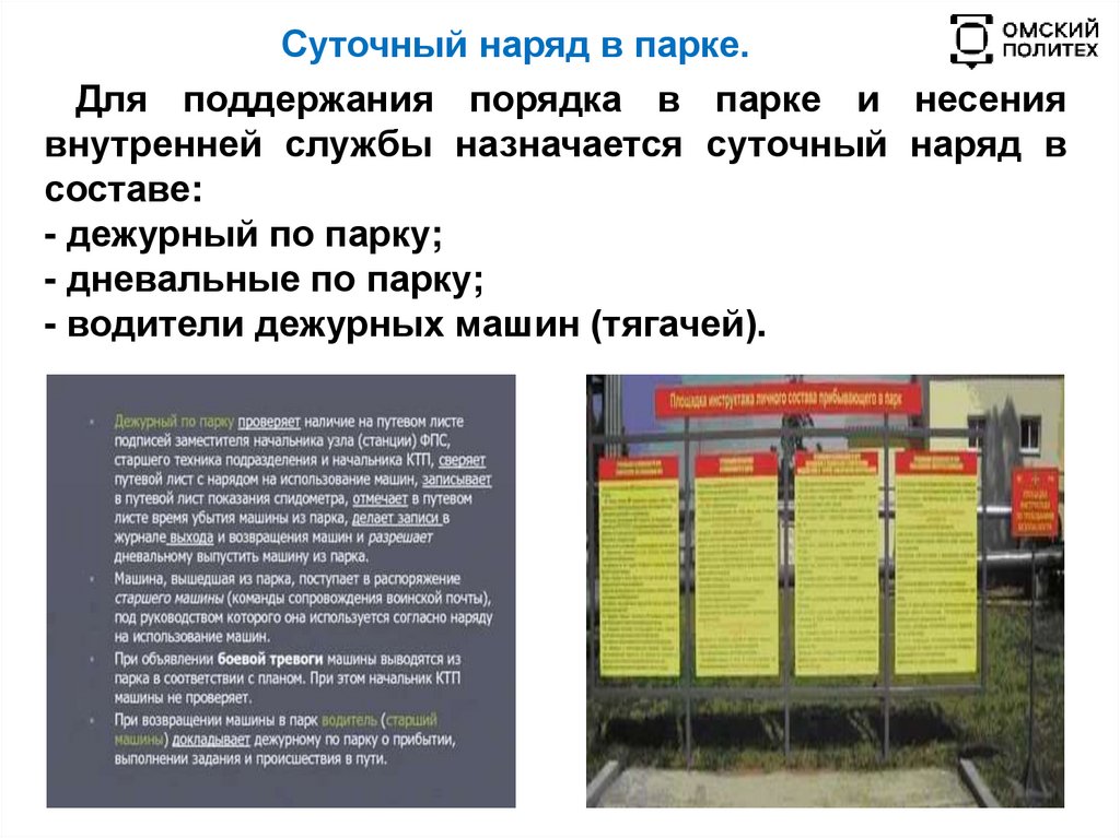 Суточный наряд в парке.Дежурный по парку назначается из офицеров или