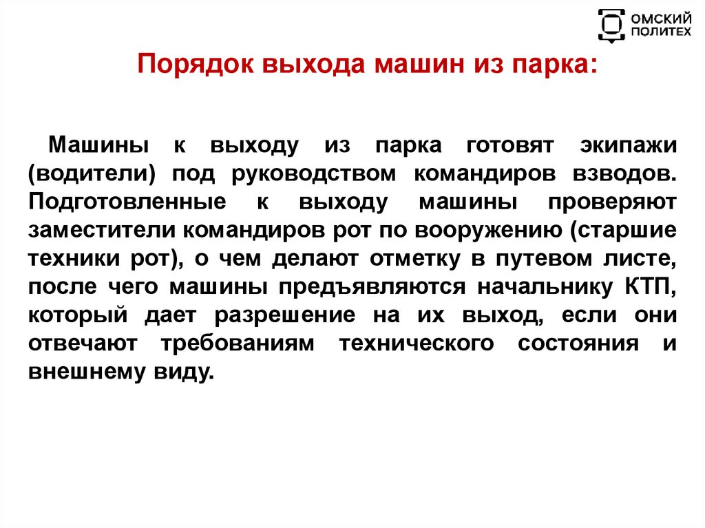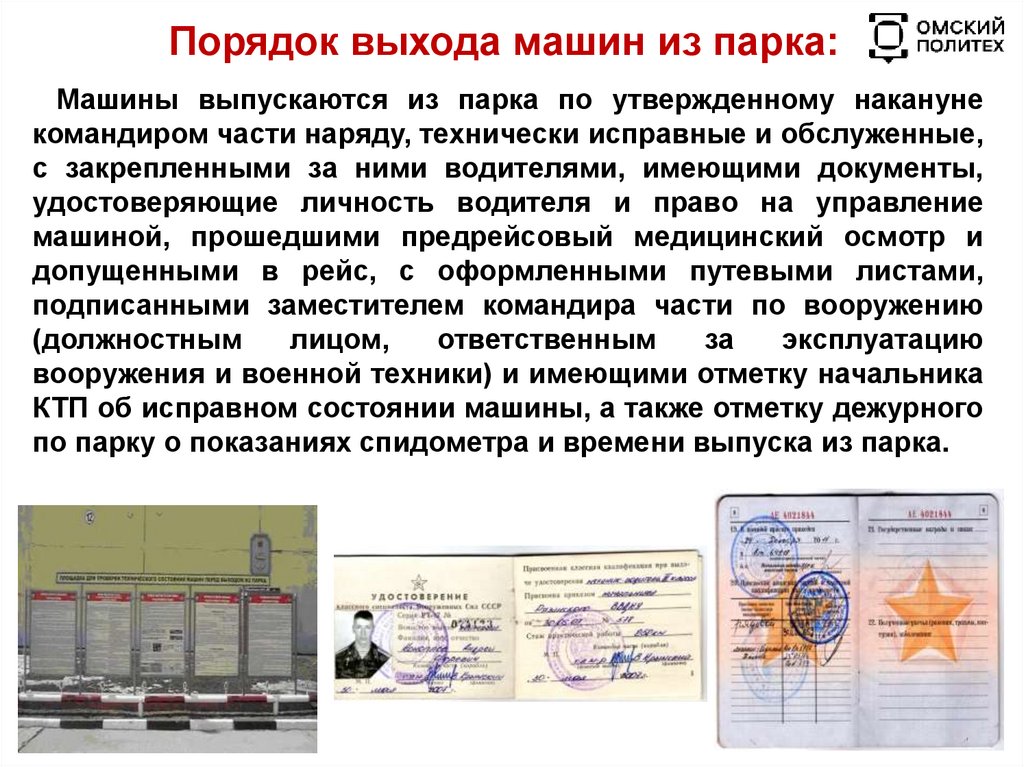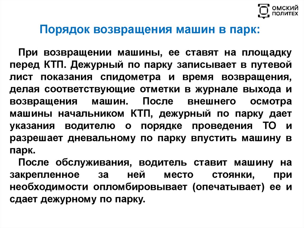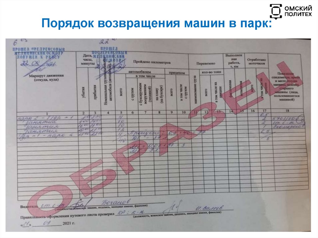 3. Ознакомиться с порядком выхода машин из парка и возвращения их в