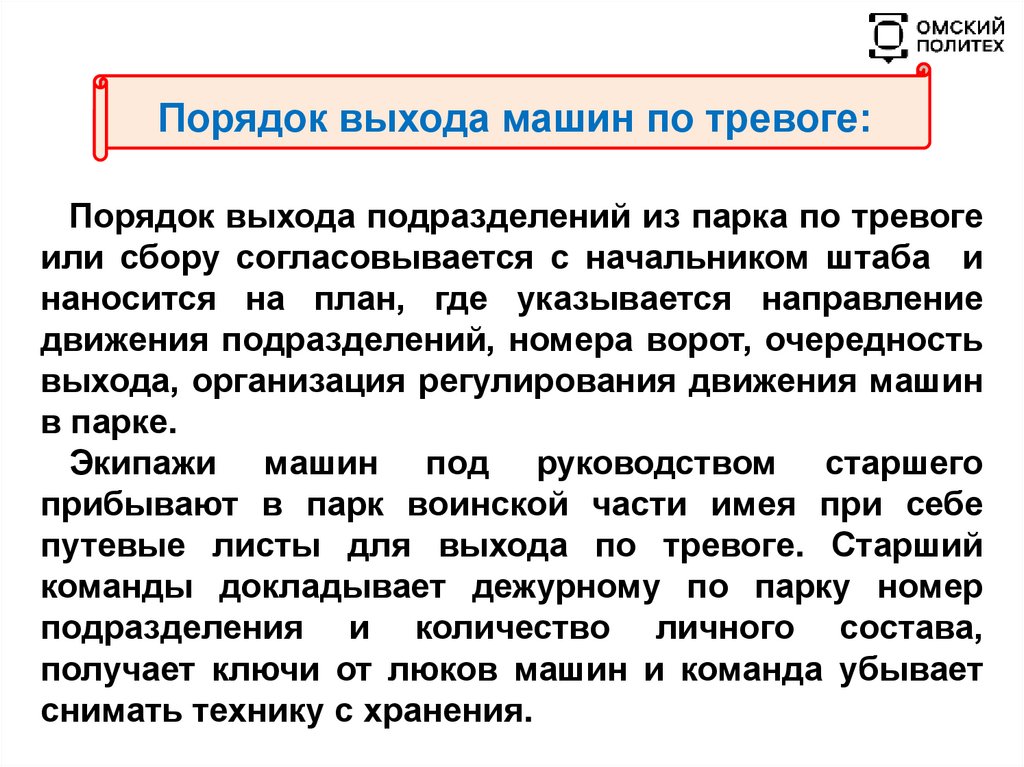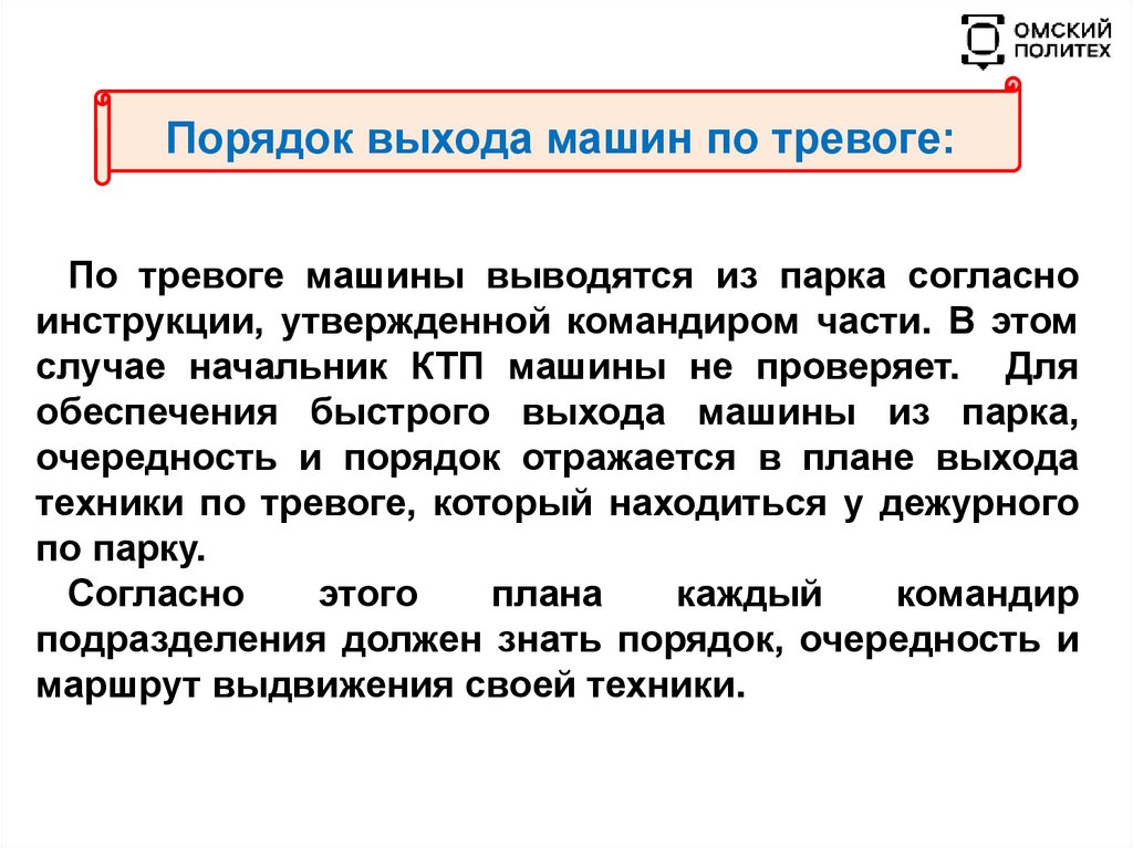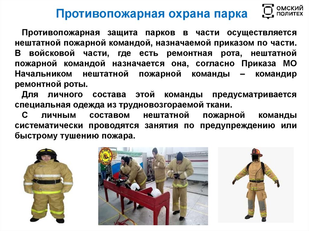 55. Четвёртый учебный вопрос Суточный наряд в парке, противопожарная охрана парка