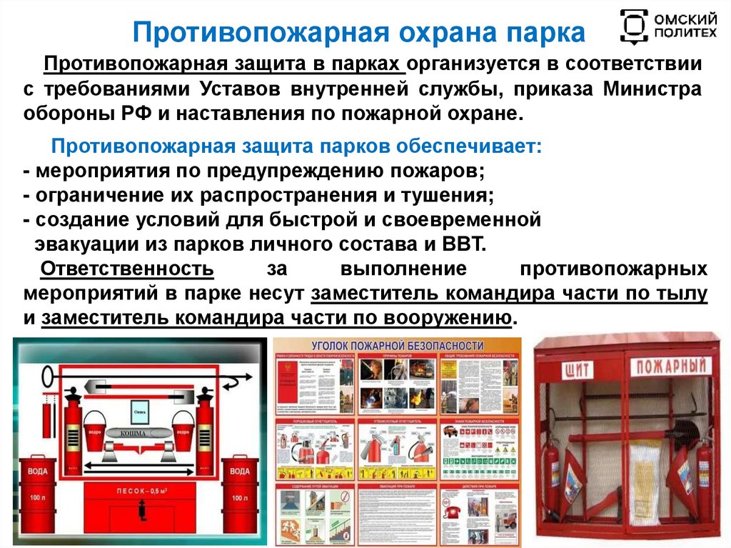 Противопожарная охрана паркаПротивопожарная защита в парках организуется в соответствии