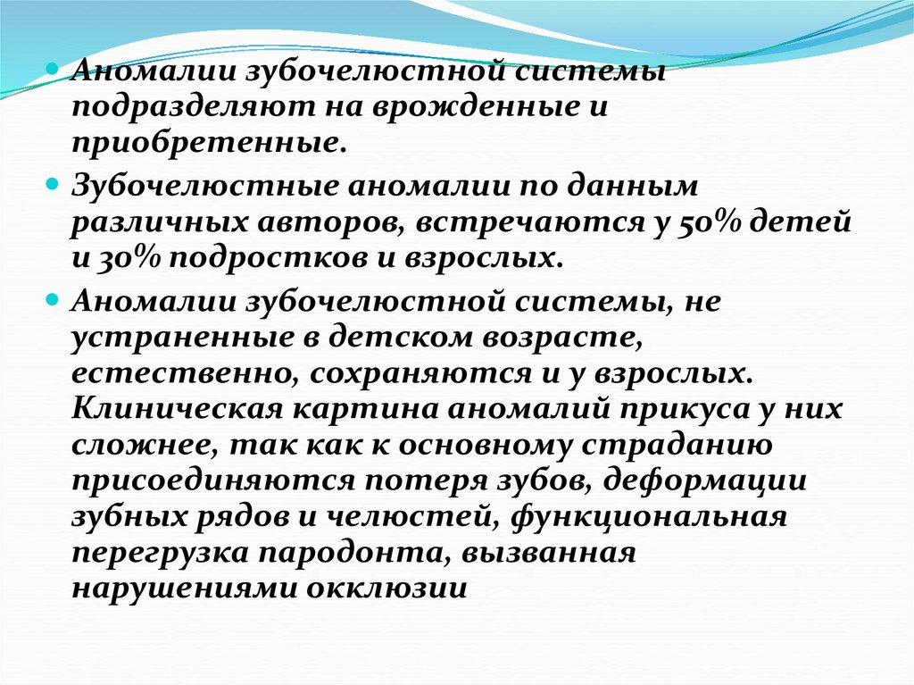 Аномалии зубочелюстной системыподразделяют на врожденные и
