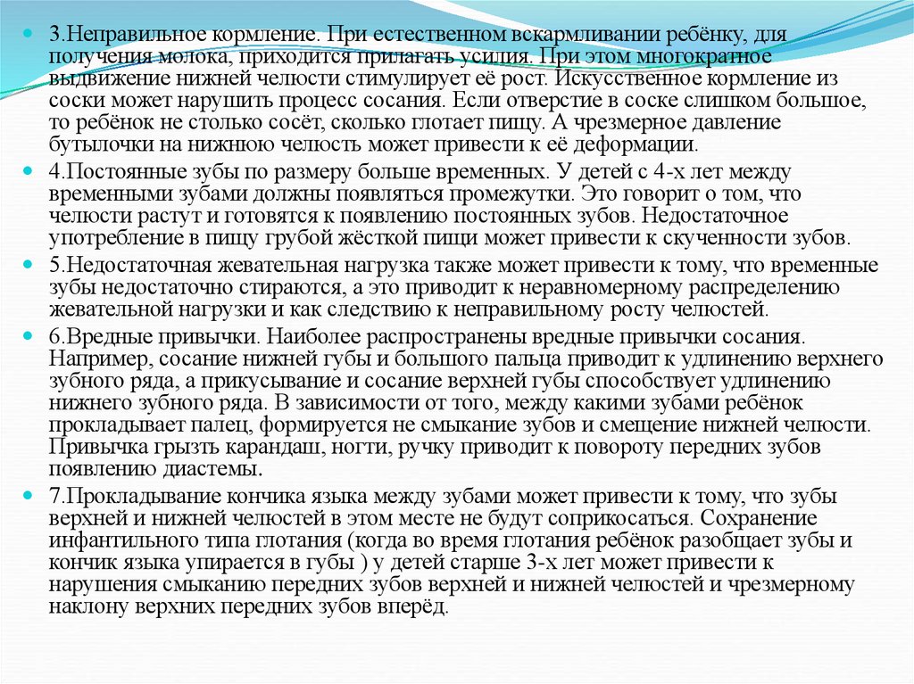 жевательной нагрузки и как следствию к неправильному росту челюстей.