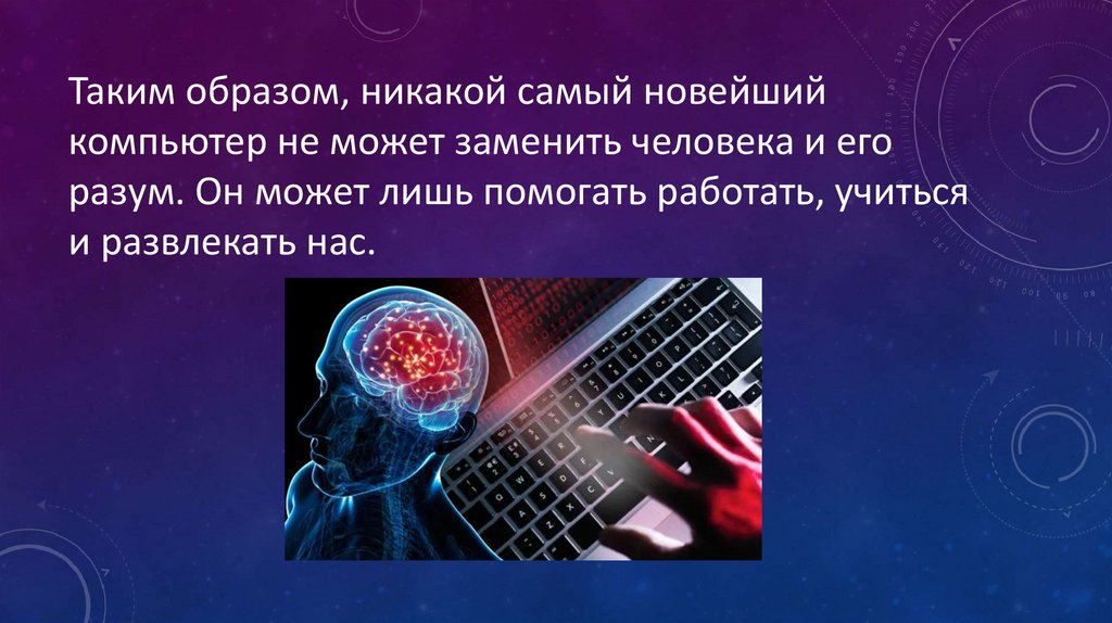 Таким образом, никакой самый новейшийкомпьютер не может заменить человека и его