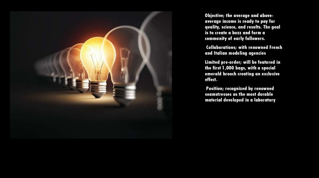 Objective; the average and aboveaverage income is ready to pay forquality, science, and results. The goal
