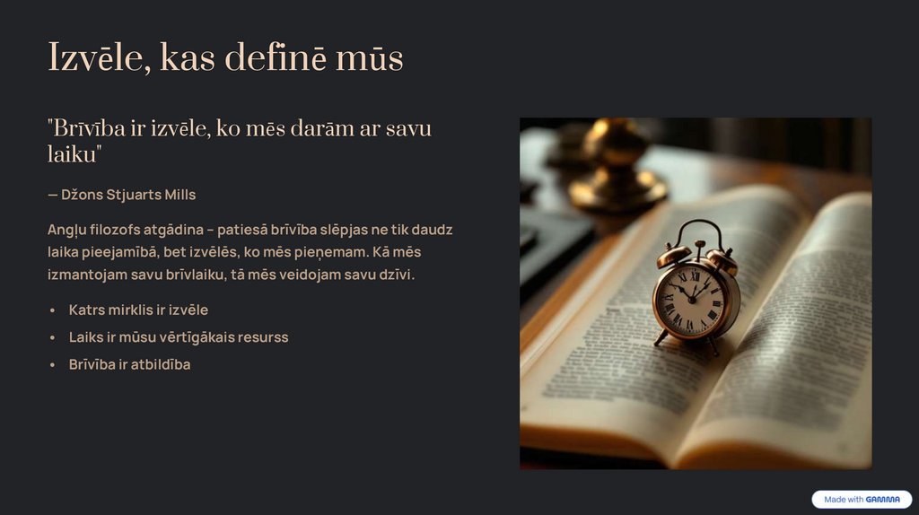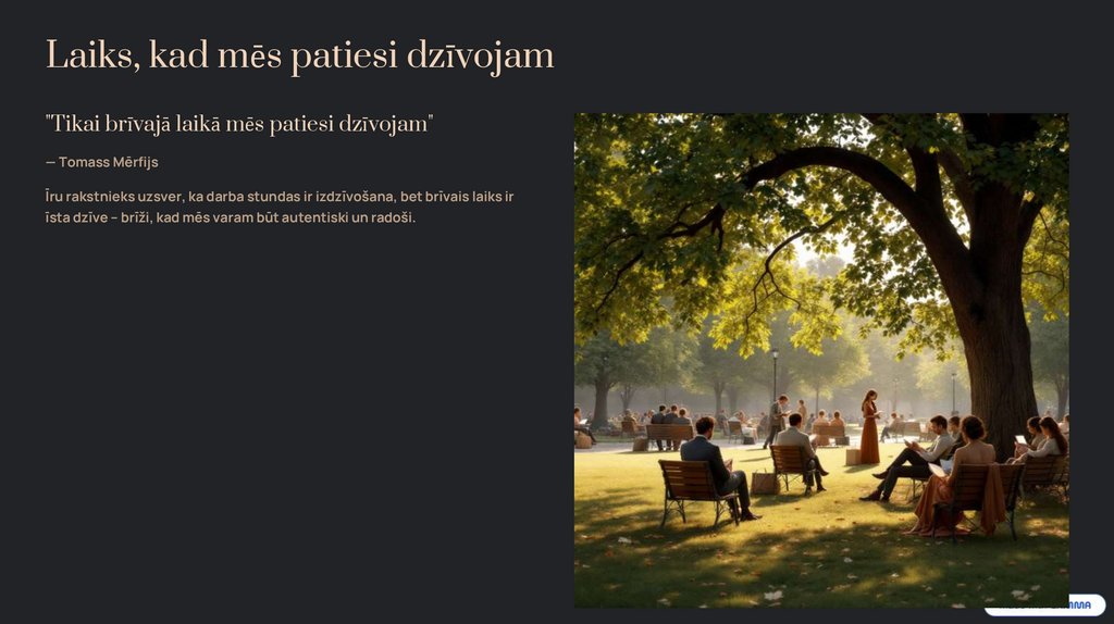 Laiks, kad mēs patiesi dzīvojam"Tikai brīvajā laikā mēs patiesi dzīvojam"