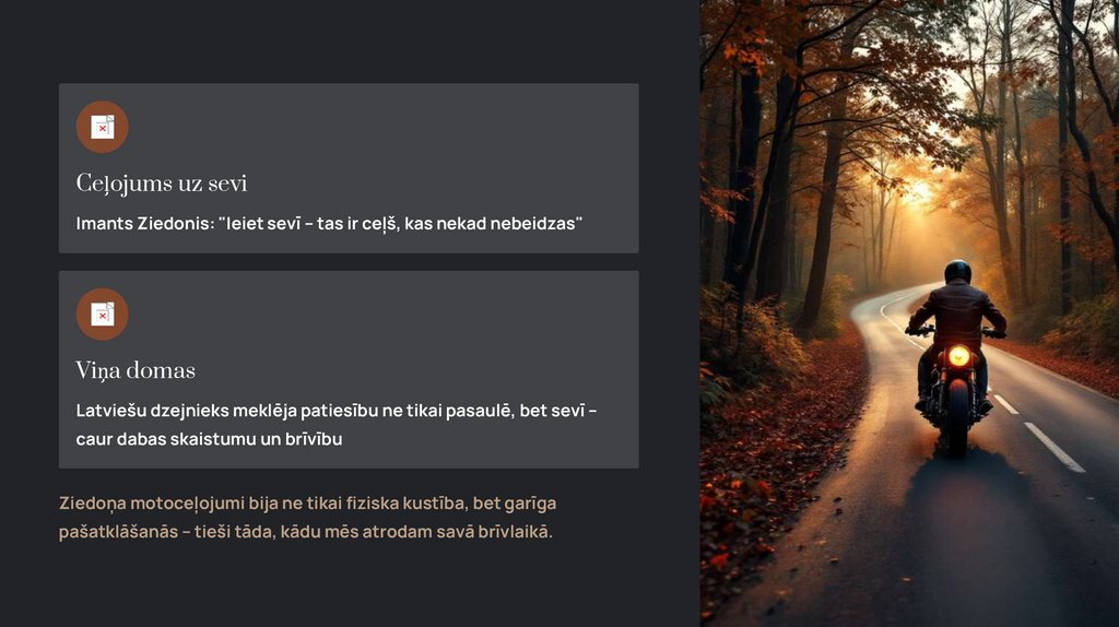 Ziedoņa motoceļojumi bija ne tikai fiziska kustība, bet garīga