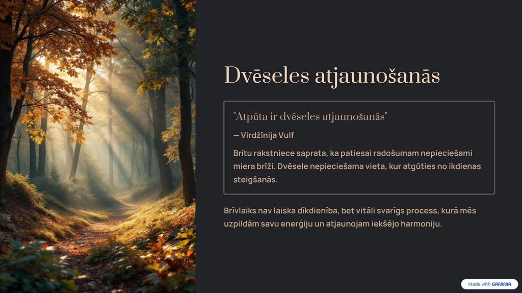 Dvēseles atjaunošanās"Atpūta ir dvēseles atjaunošanās"