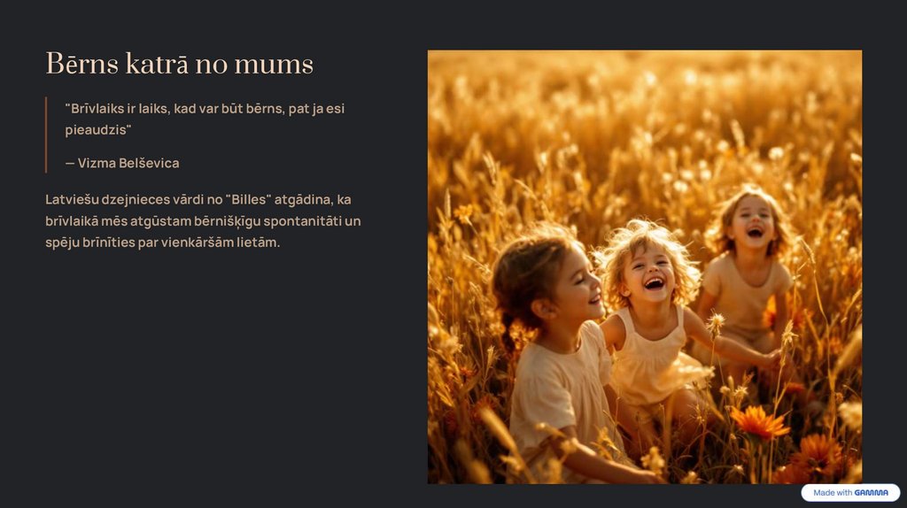 Bērns katrā no mums"Brīvlaiks ir laiks, kad var būt bērns, pat ja esi