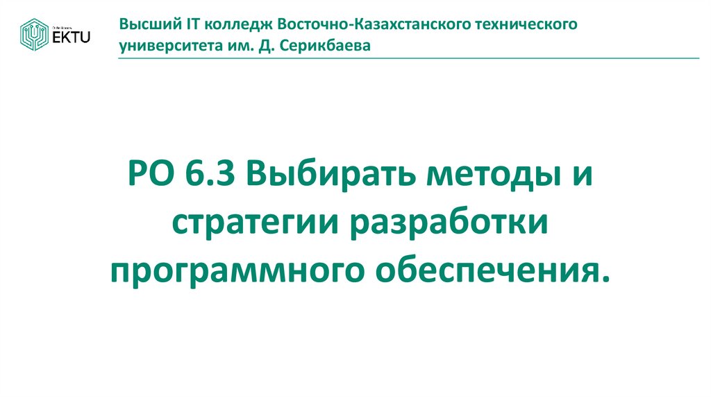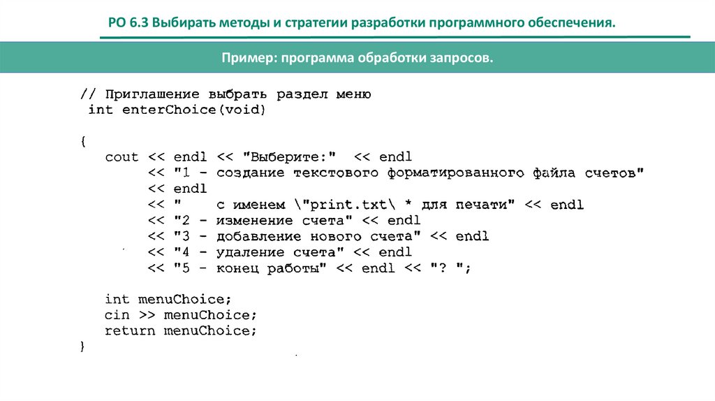 РО 6.3 Выбирать методы и стратегии разработки программного обеспечения