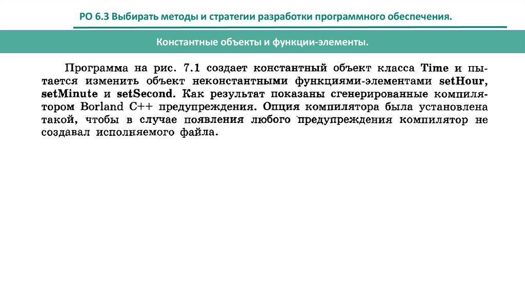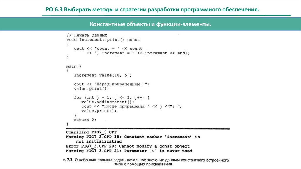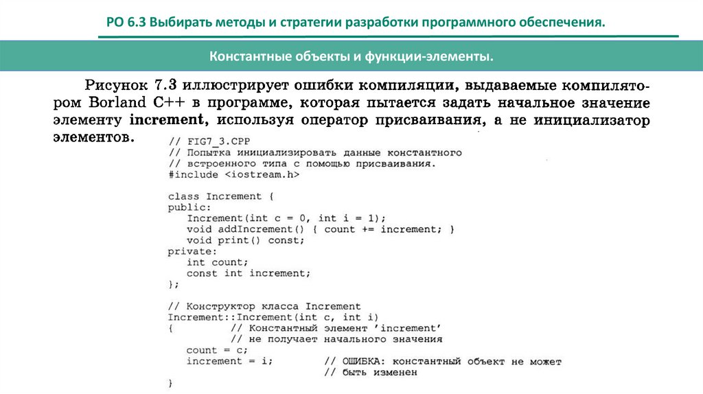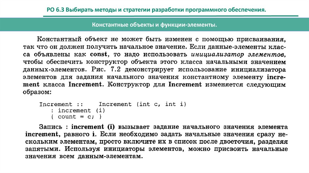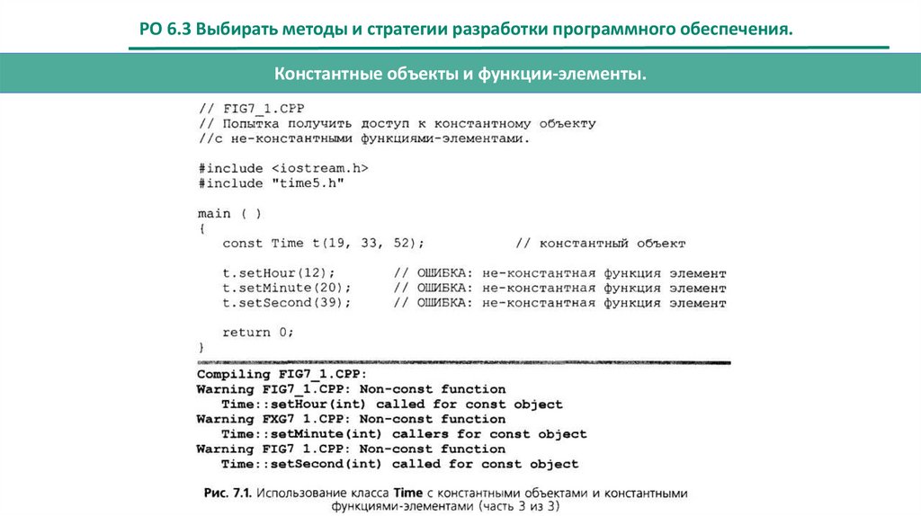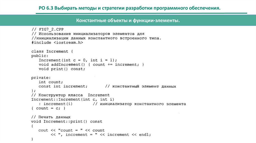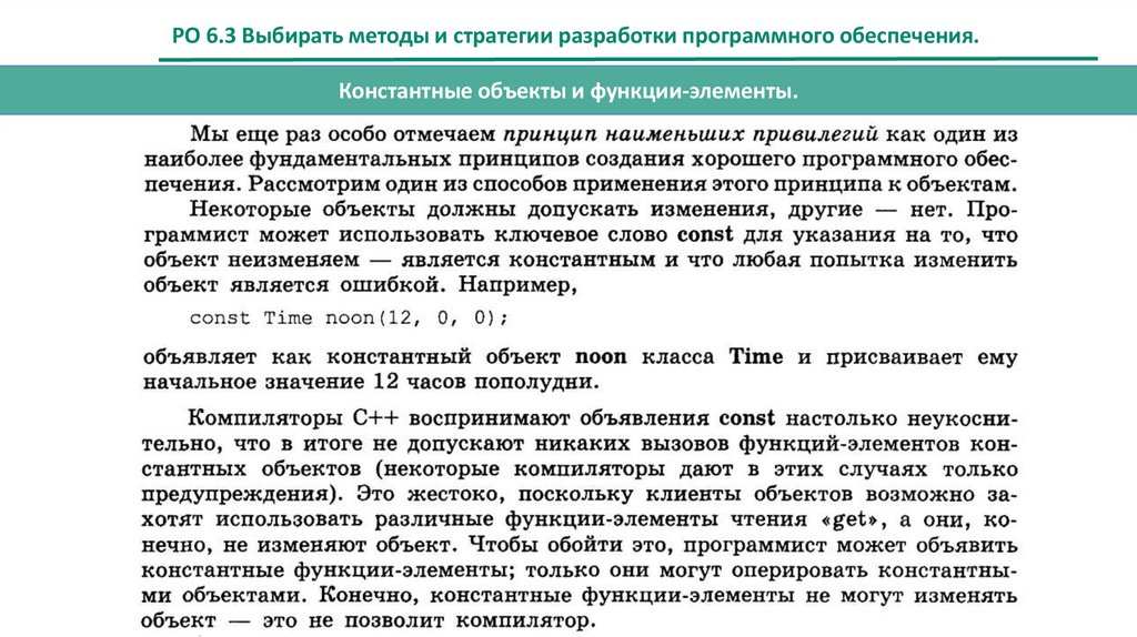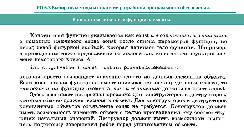 РО 6.3 Выбирать методы и стратегии разработки программного обеспечения.Константные объекты и функции-элементы.