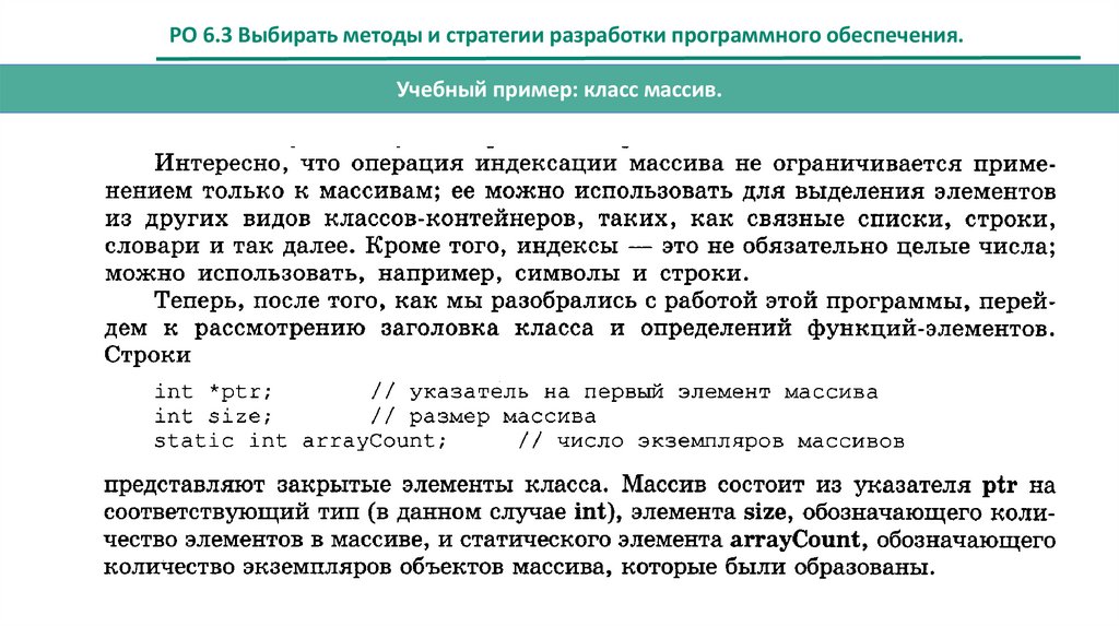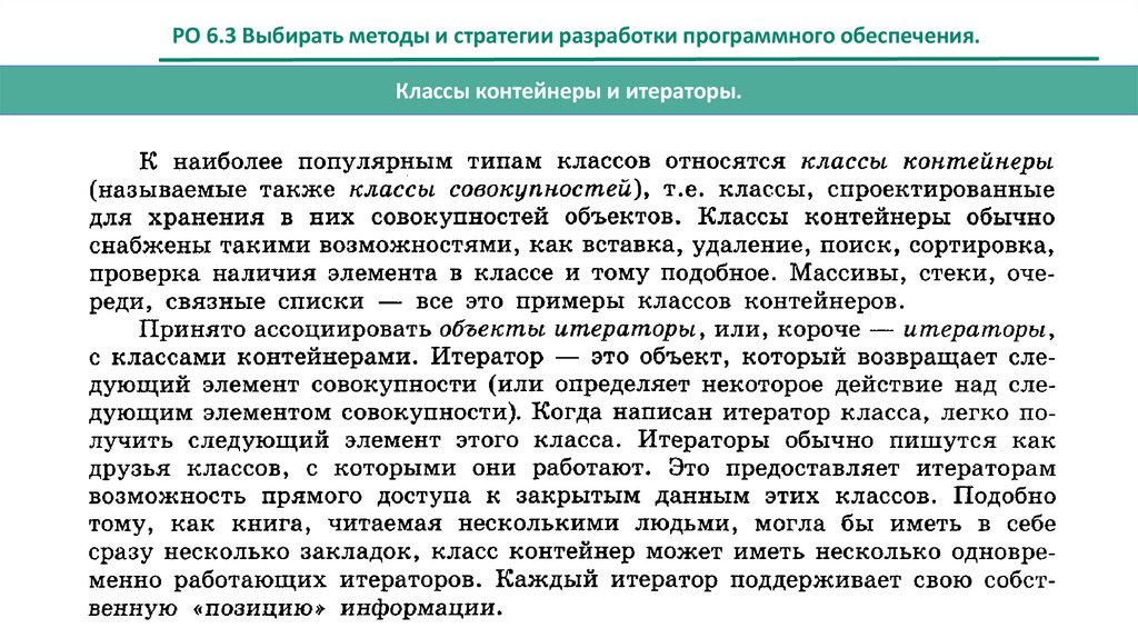 РО 6.3 Выбирать методы и стратегии разработки программного обеспечения.Классы контейнеры и итераторы.