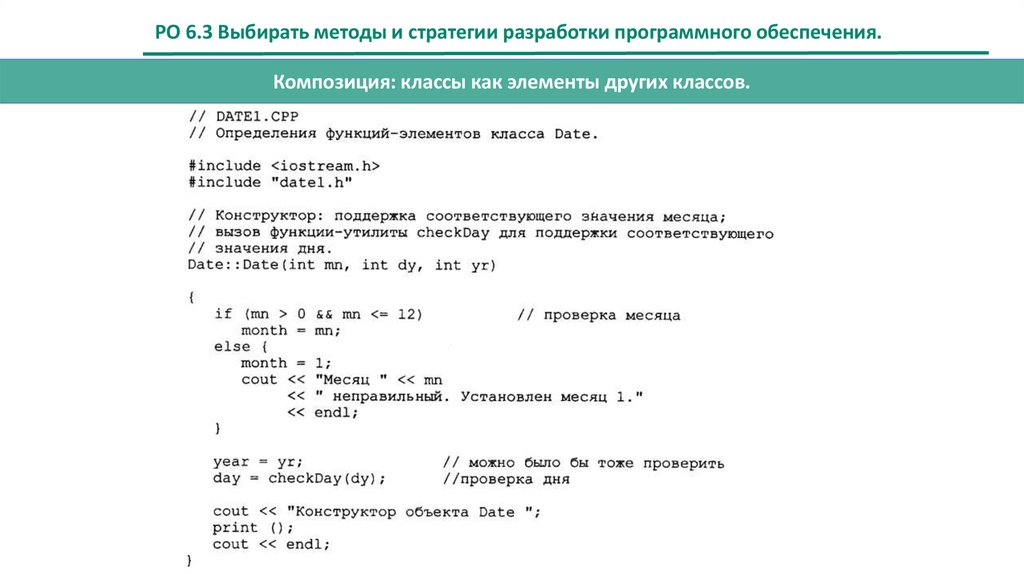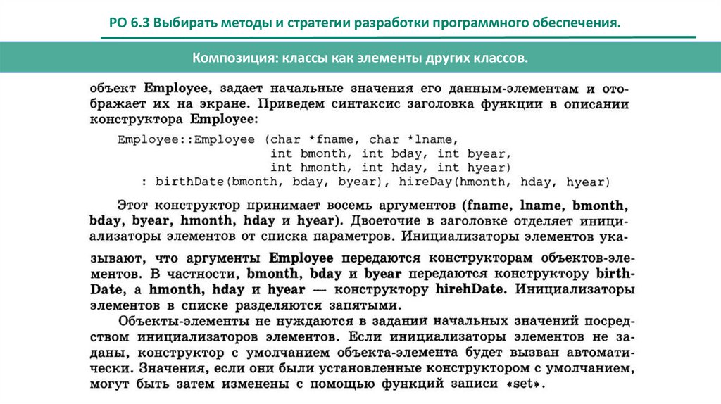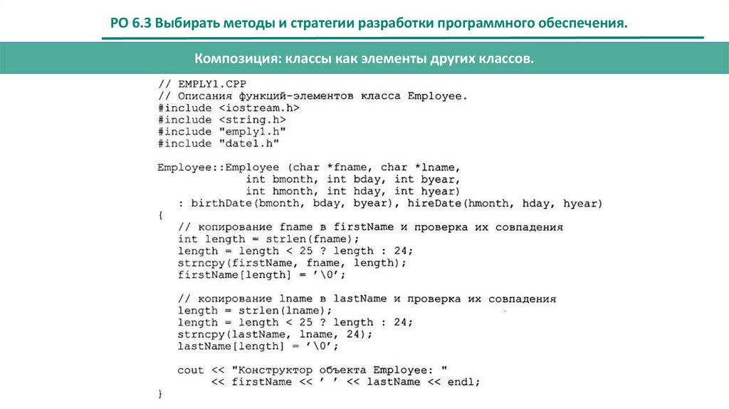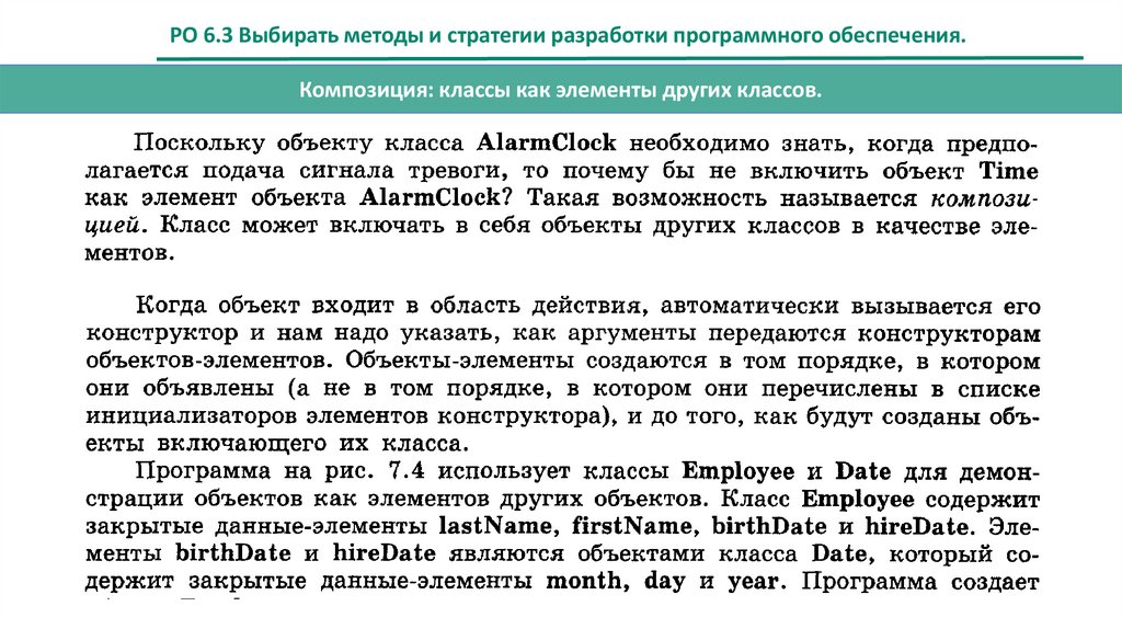 РО 6.3 Выбирать методы и стратегии разработки программного обеспечения.Композиция: классы как элементы других классов.
