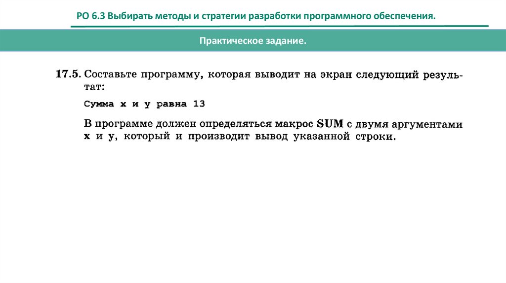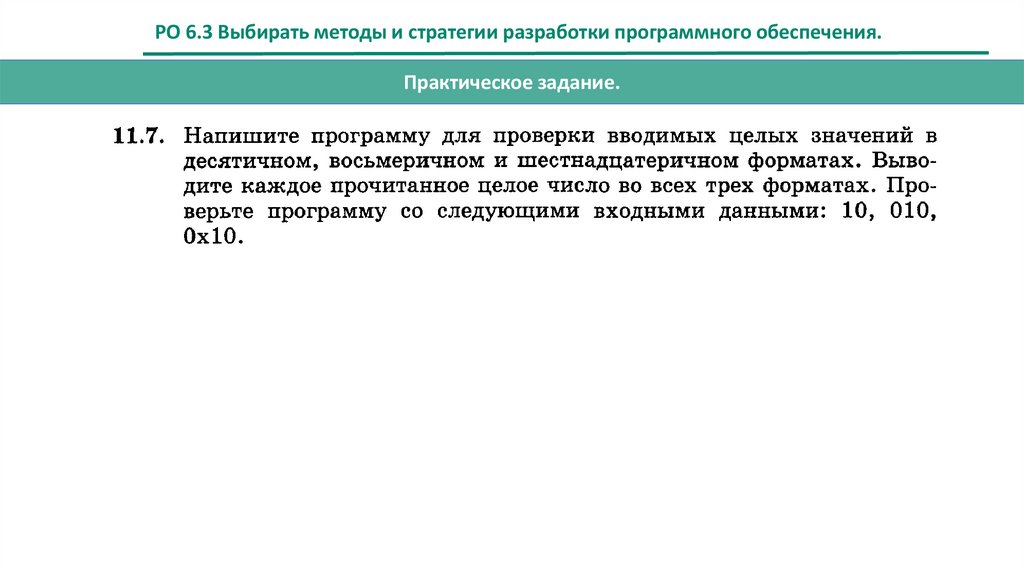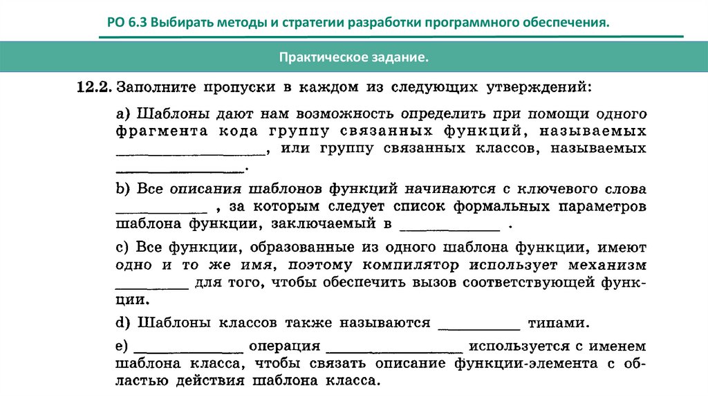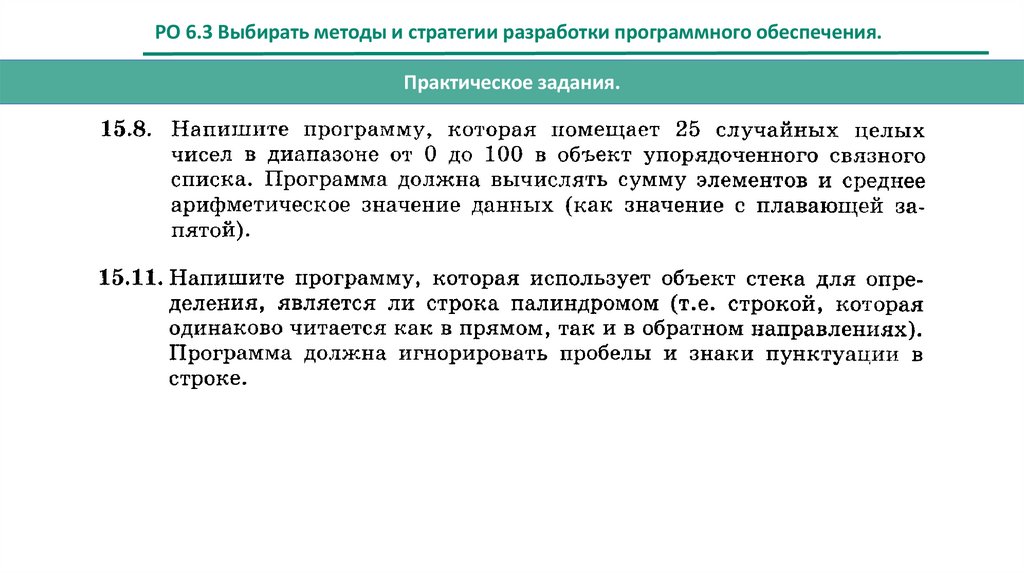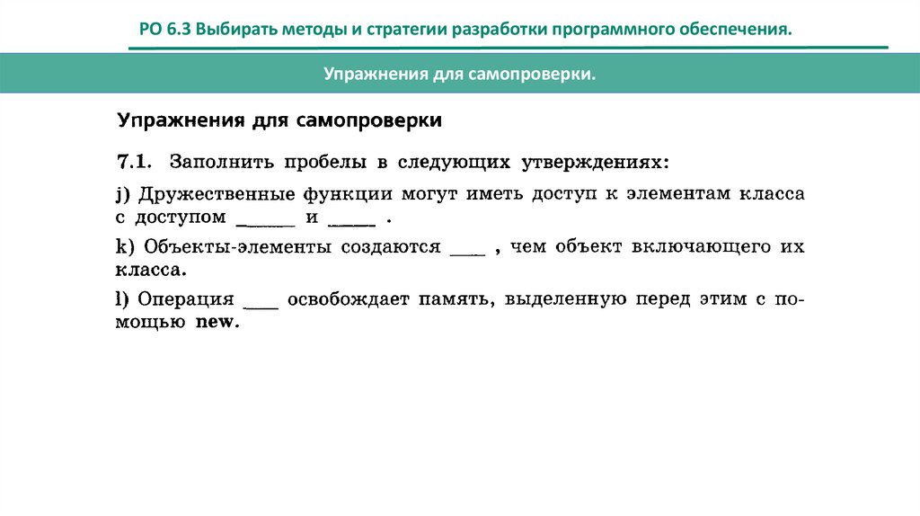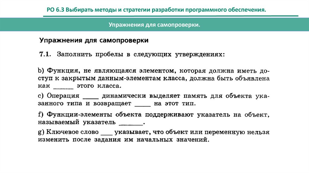 РО 6.3 Выбирать методы и стратегии разработки программного обеспечения.Упражнения для самопроверки.