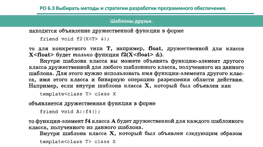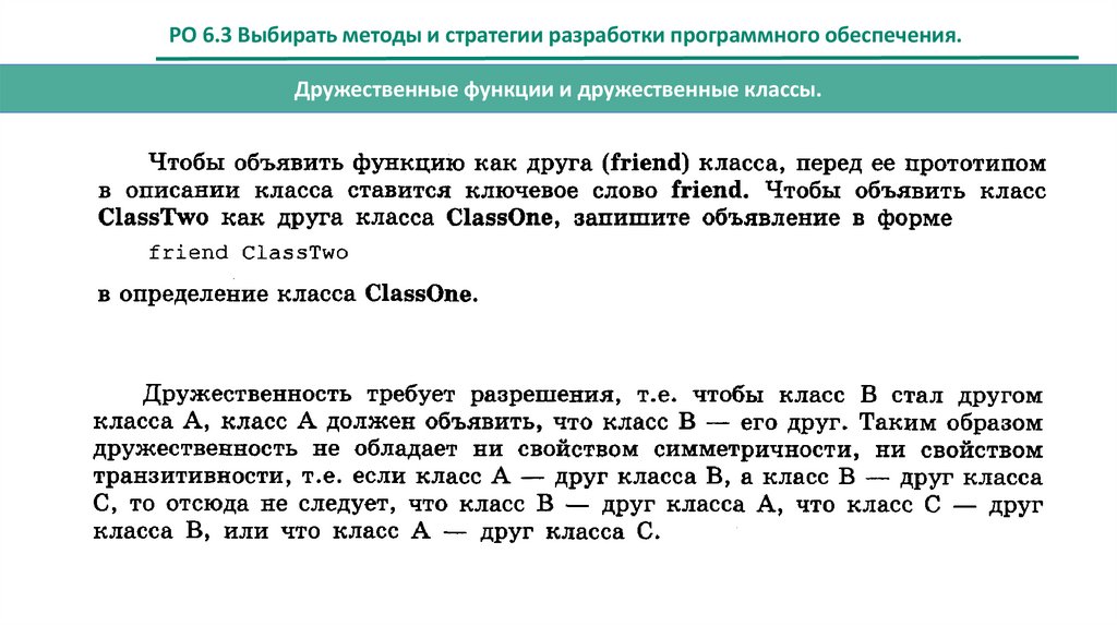 РО 6.3 Выбирать методы и стратегии разработки программного обеспечения.Дружественные функции и дружественные классы.