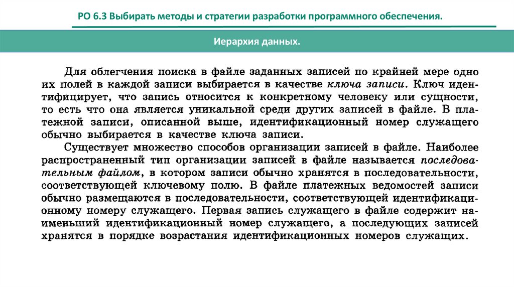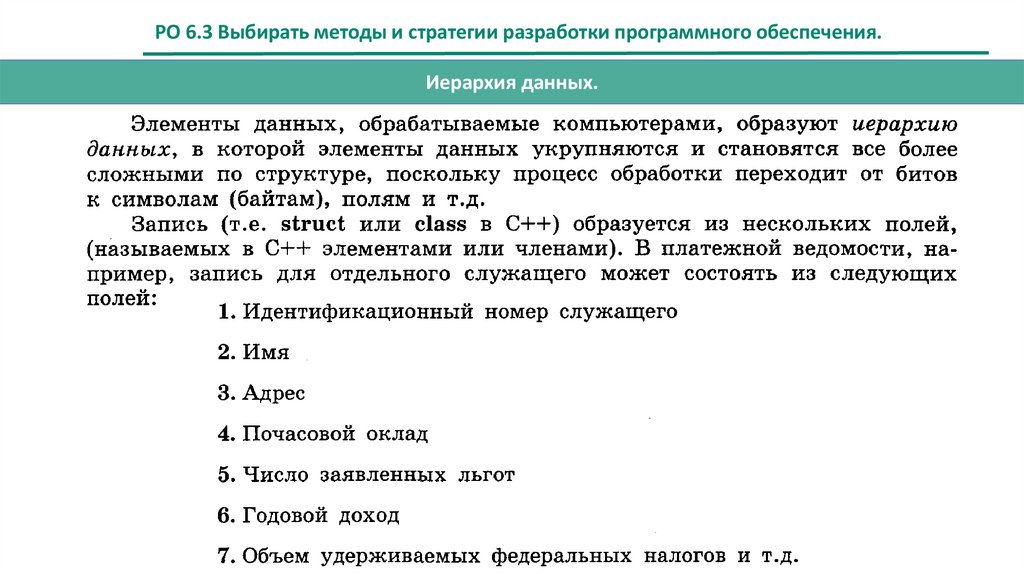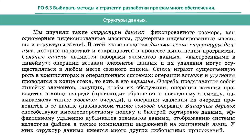 РО 6.3 Выбирать методы и стратегии разработки программного обеспечения.Структуры данных.