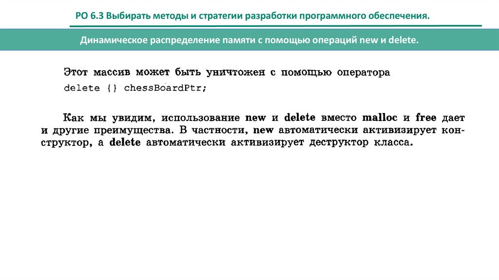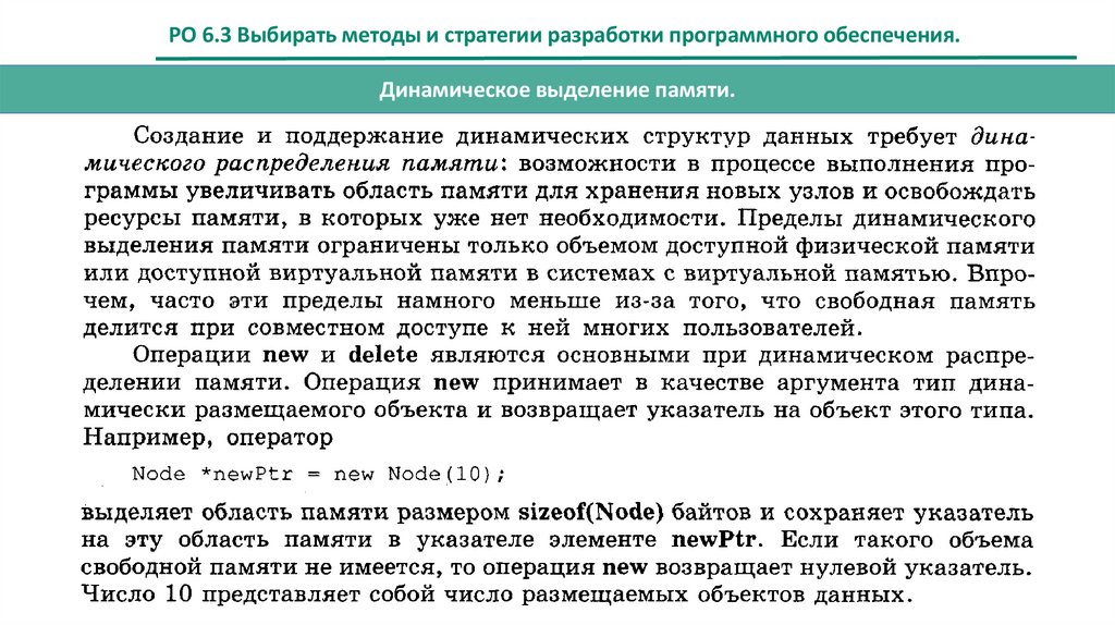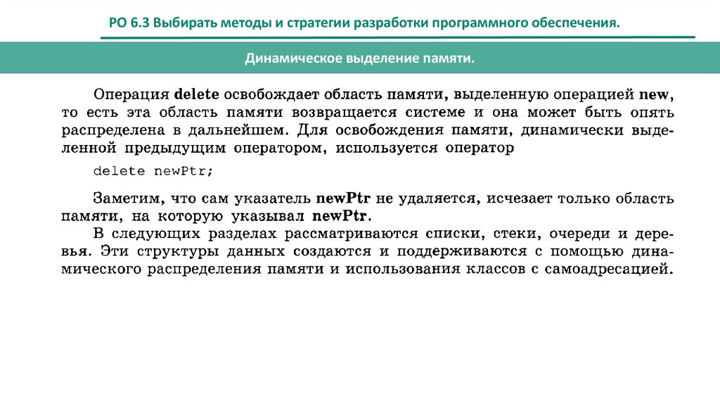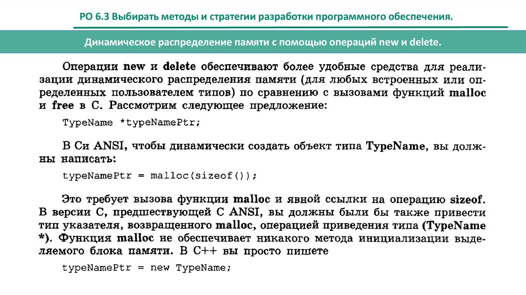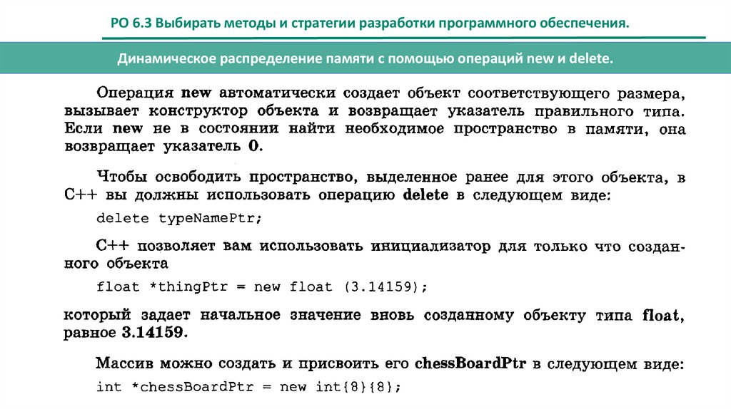 РО 6.3 Выбирать методы и стратегии разработки программного обеспечения.Динамическое распределение памяти с помощью операций new и delete.