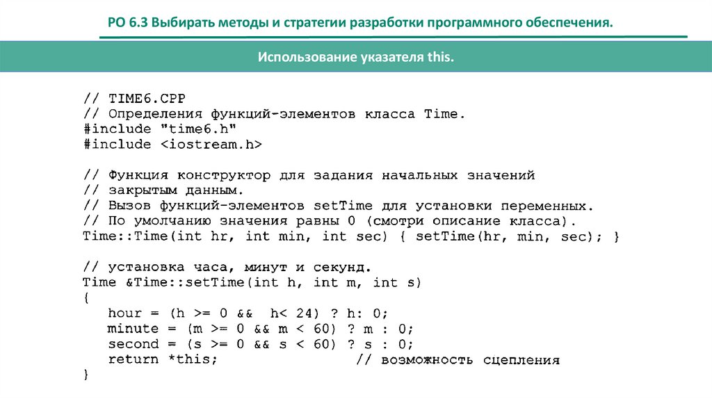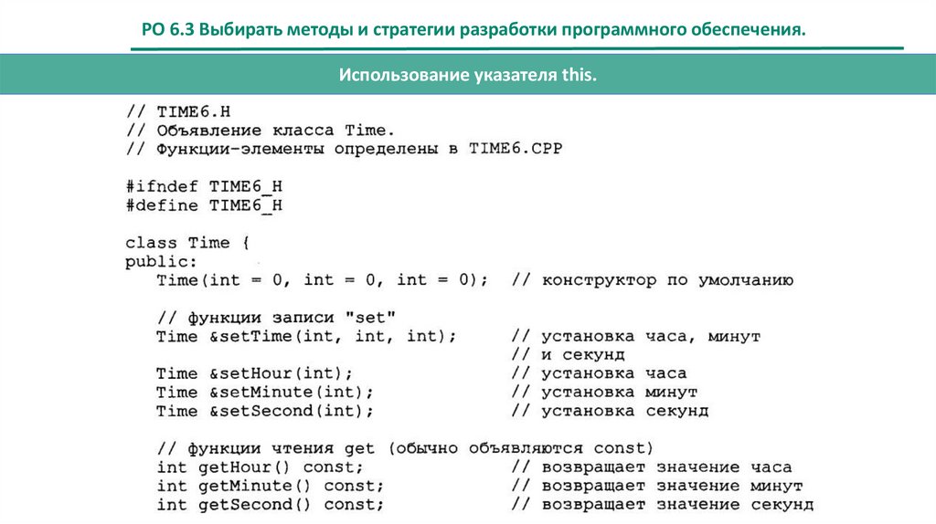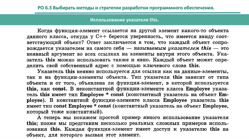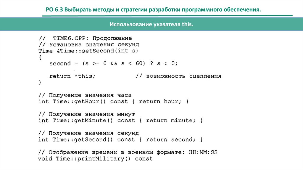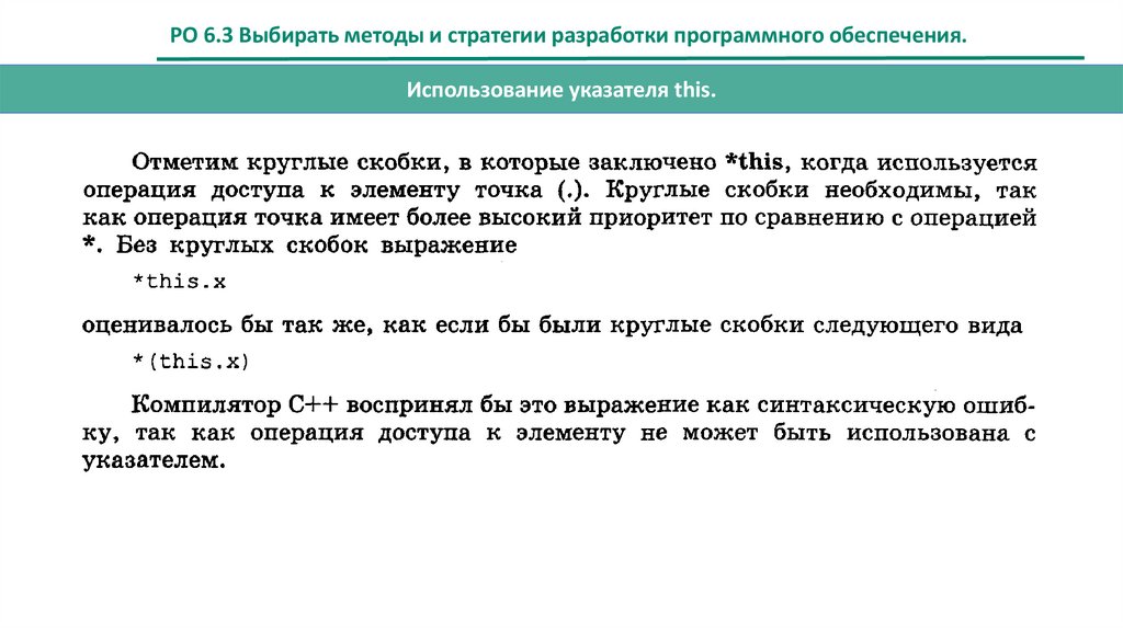 РО 6.3 Выбирать методы и стратегии разработки программного обеспечения.Использование указателя this.