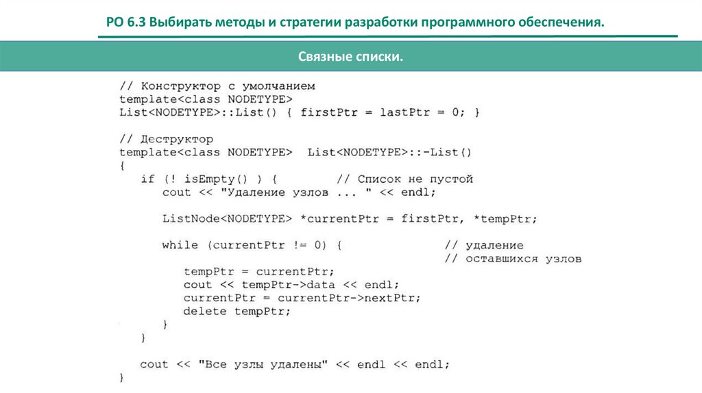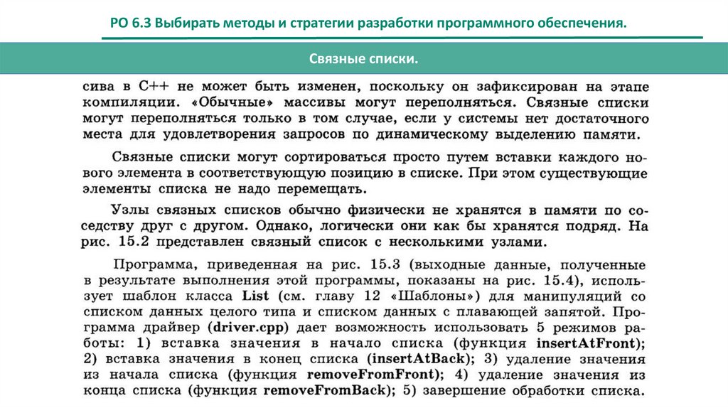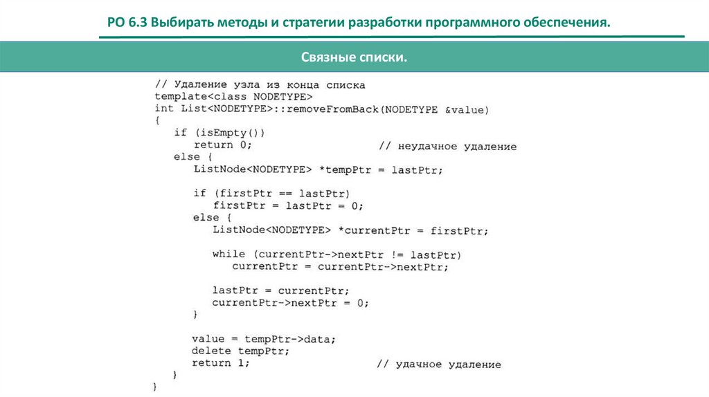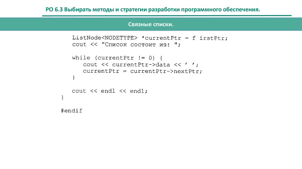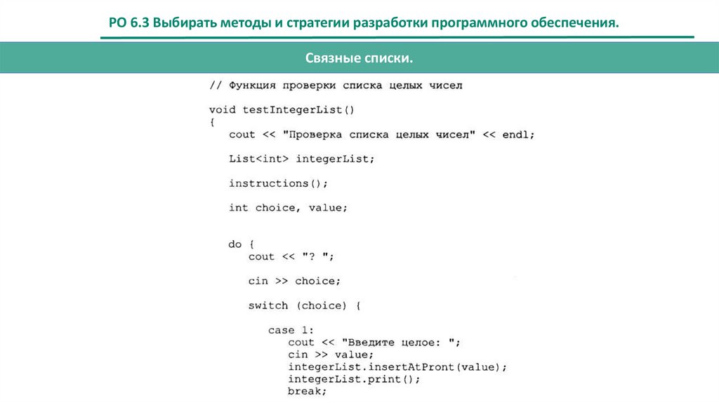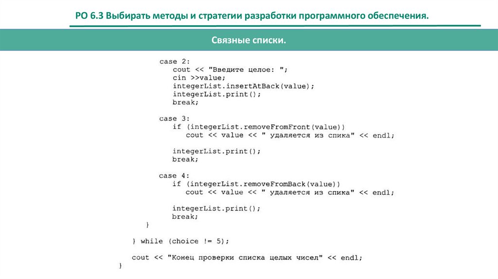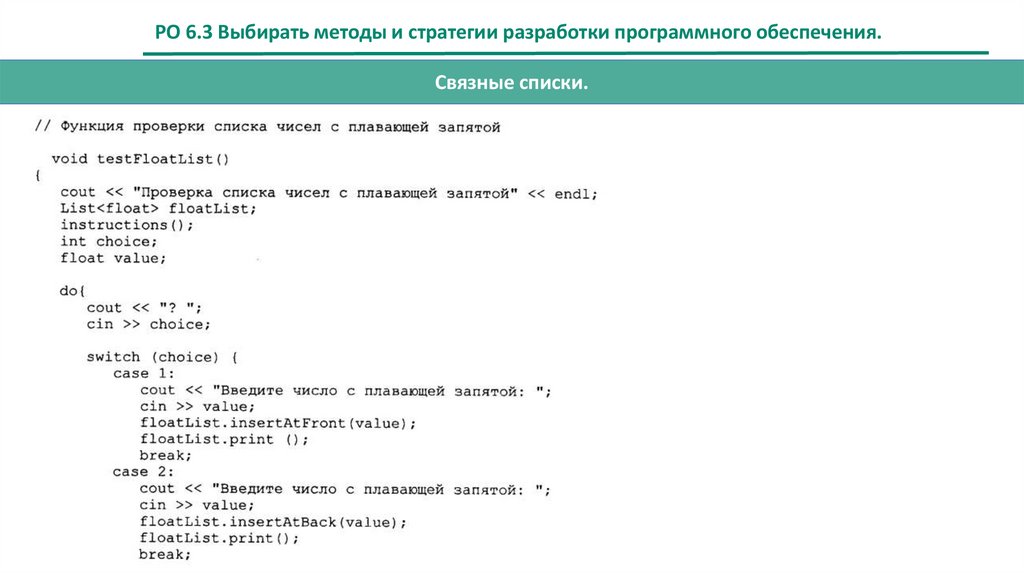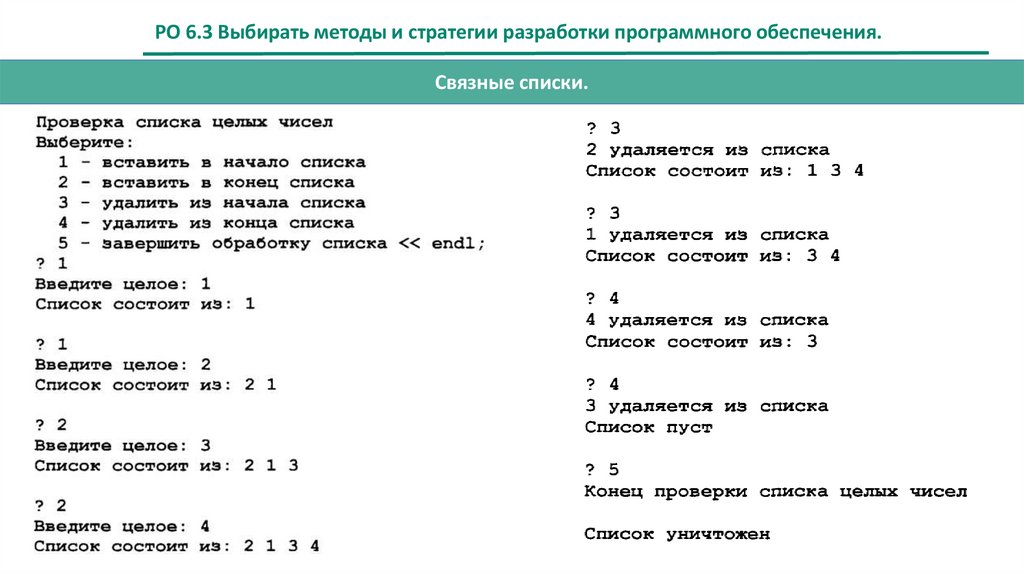 РО 6.3 Выбирать методы и стратегии разработки программного обеспечения.Связные списки.