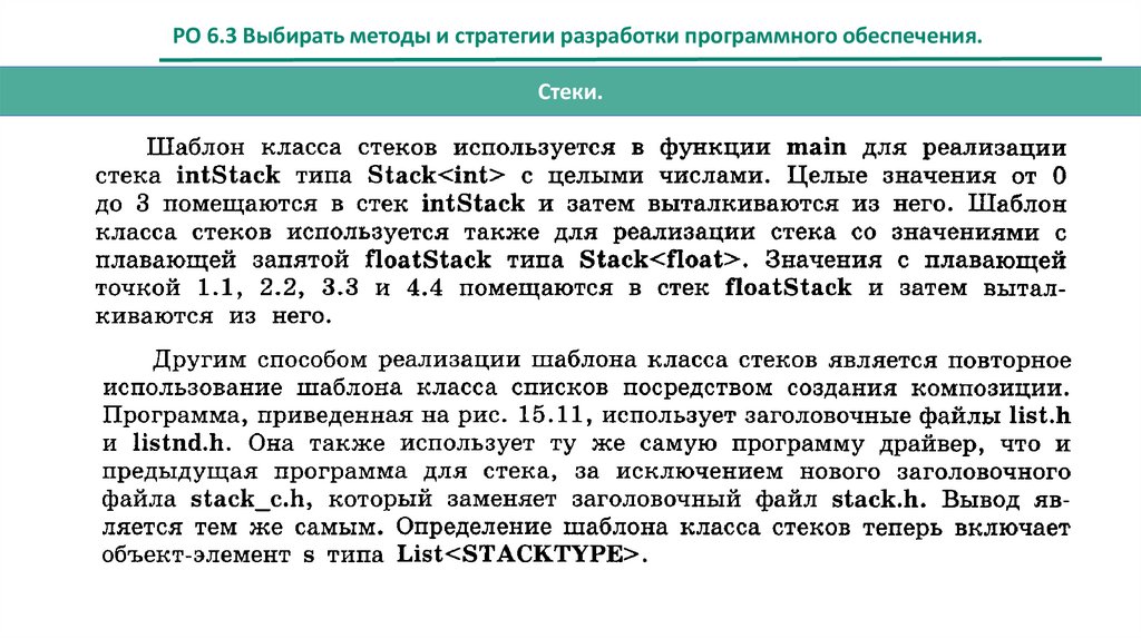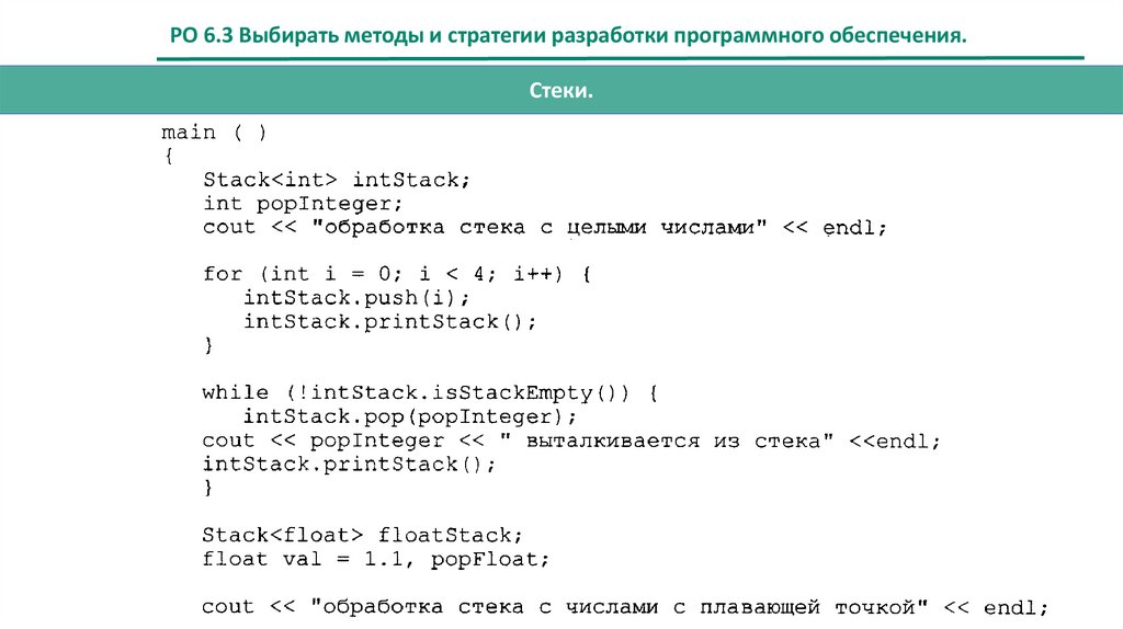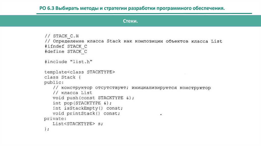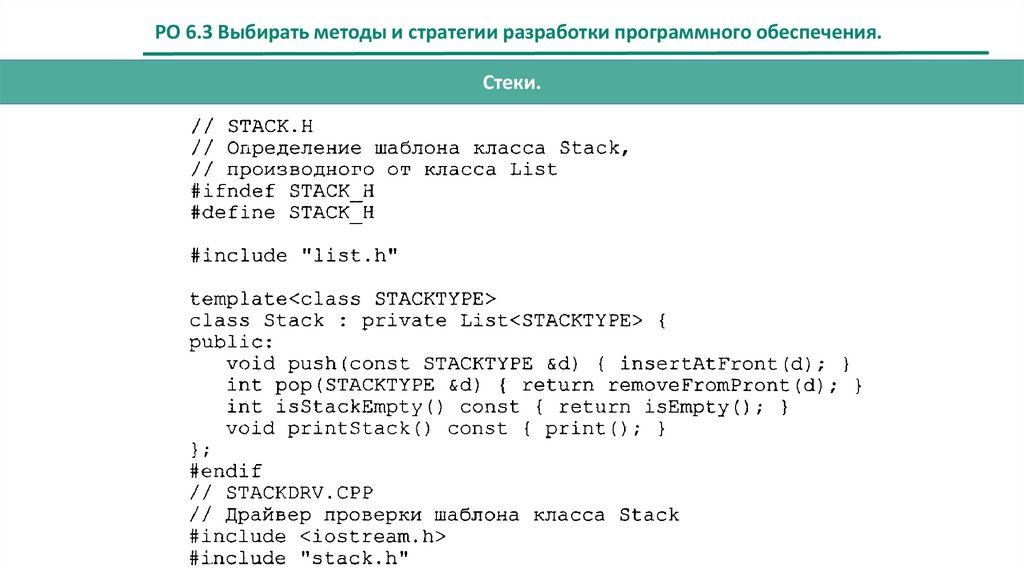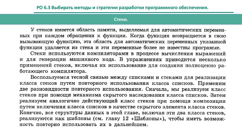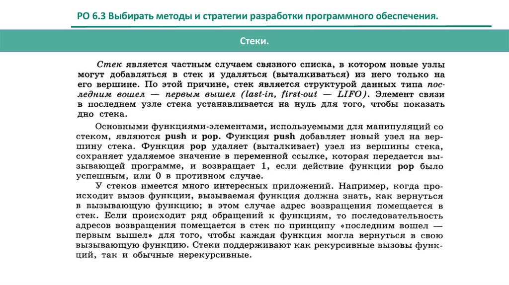 РО 6.3 Выбирать методы и стратегии разработки программного обеспечения.Стеки.