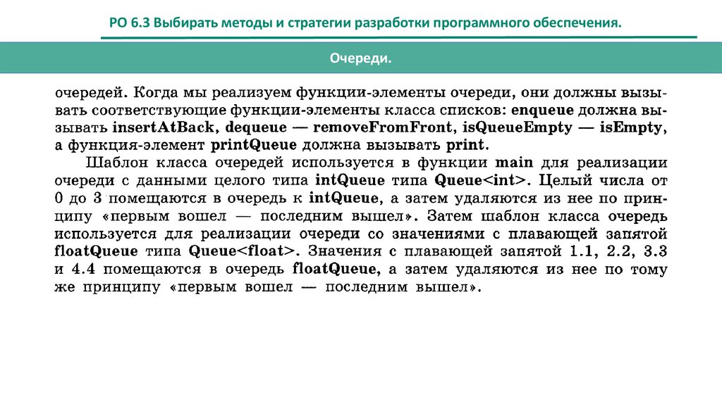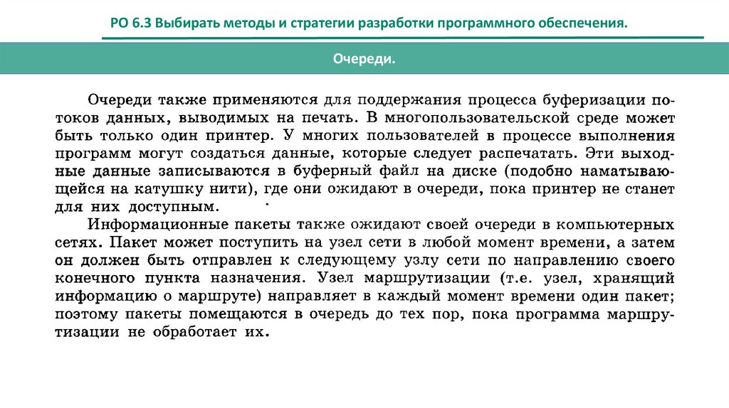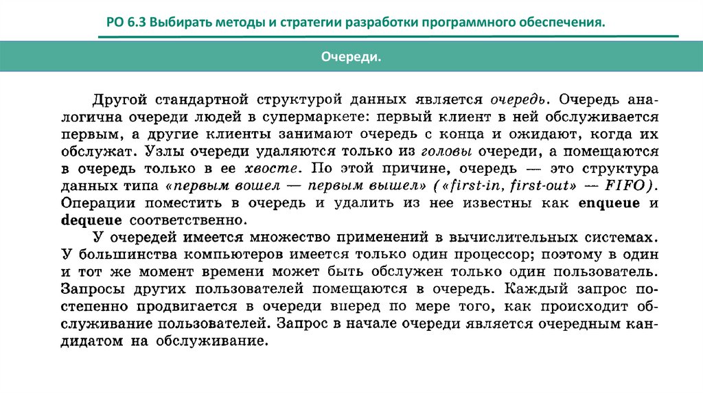 РО 6.3 Выбирать методы и стратегии разработки программного обеспечения.Очереди.
