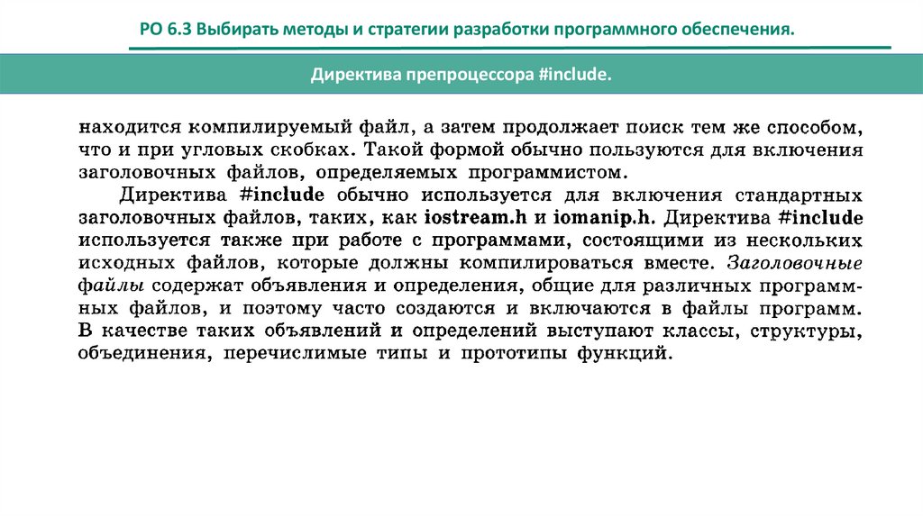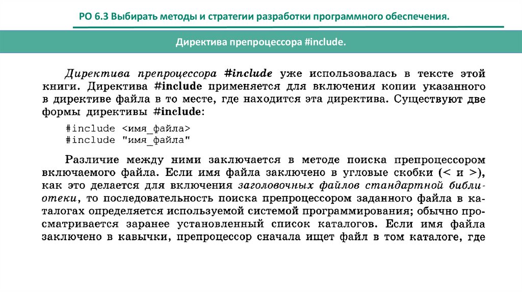 РО 6.3 Выбирать методы и стратегии разработки программного обеспечения.Директива препроцессора #include.