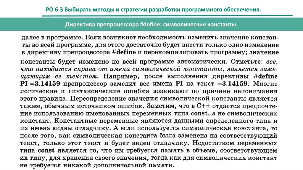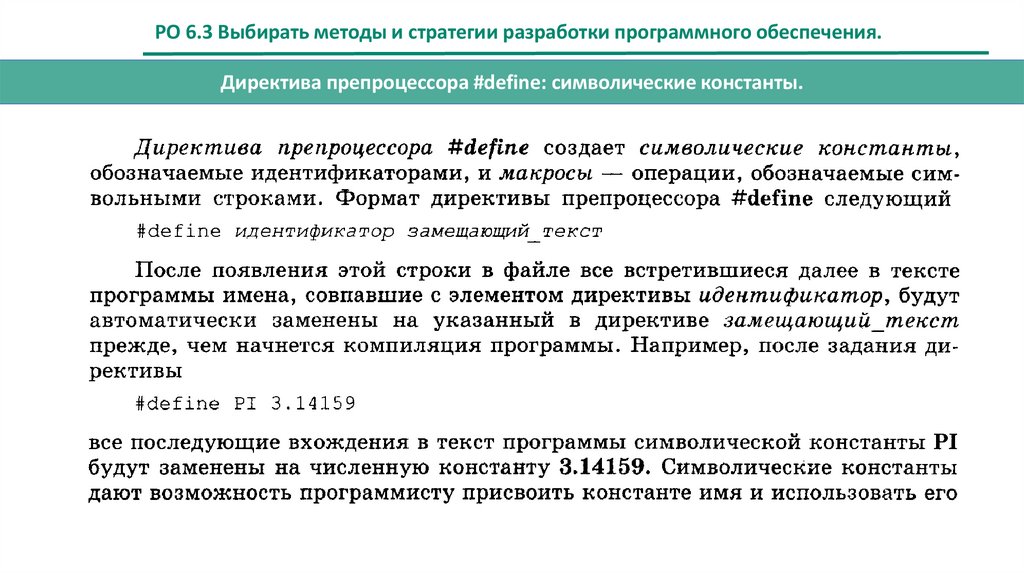 РО 6.3 Выбирать методы и стратегии разработки программного обеспечения.Директива препроцессора #define: символические константы.