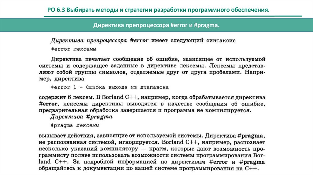 РО 6.3 Выбирать методы и стратегии разработки программного обеспечения.Директива препроцессора #error и #pragma.