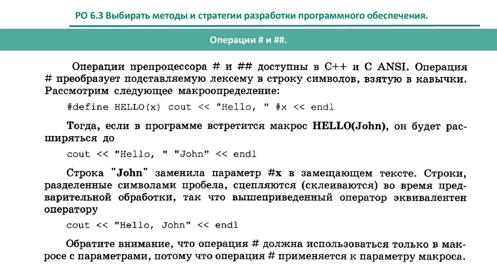 РО 6.3 Выбирать методы и стратегии разработки программного обеспечения.Операции # и ##.