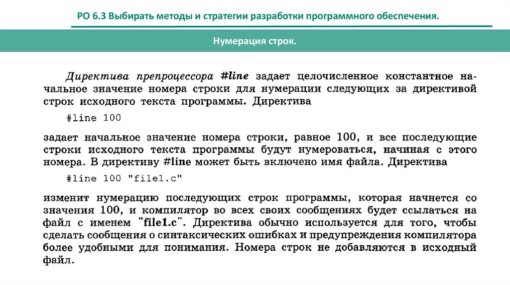 РО 6.3 Выбирать методы и стратегии разработки программного обеспечения.Нумерация строк.
