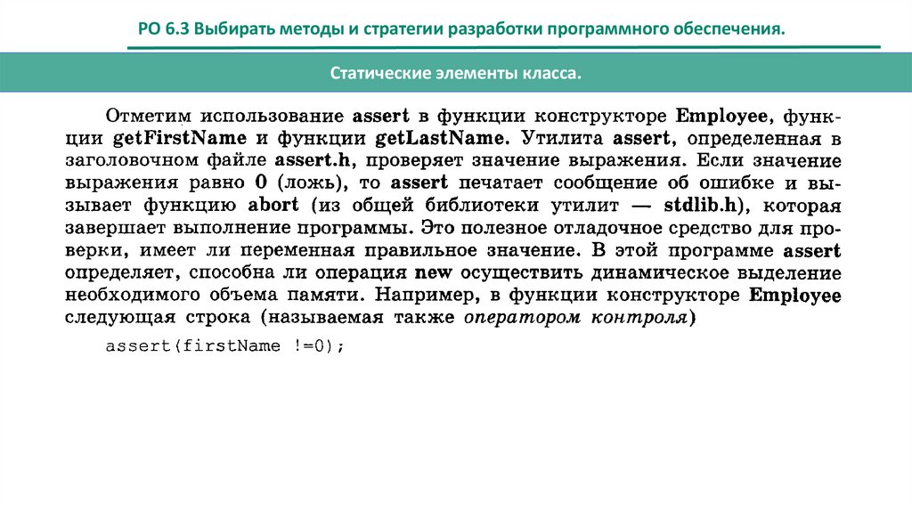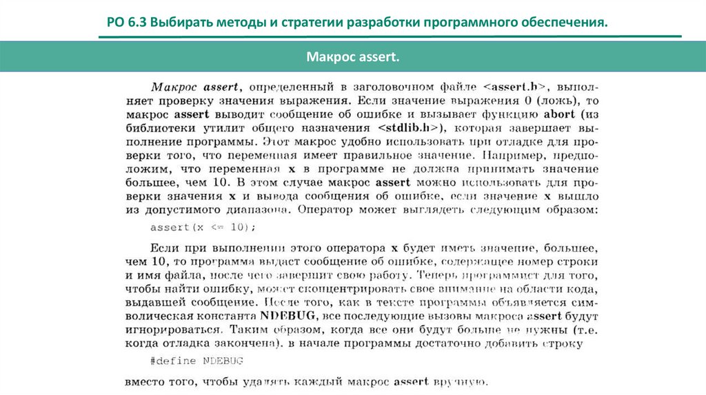 РО 6.3 Выбирать методы и стратегии разработки программного обеспечения.Макрос assert.