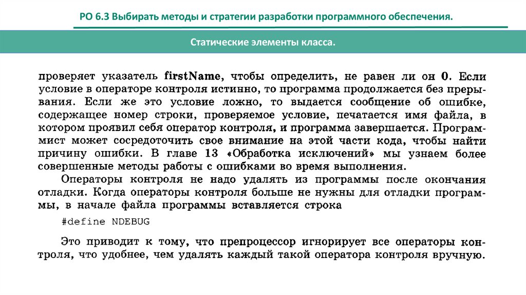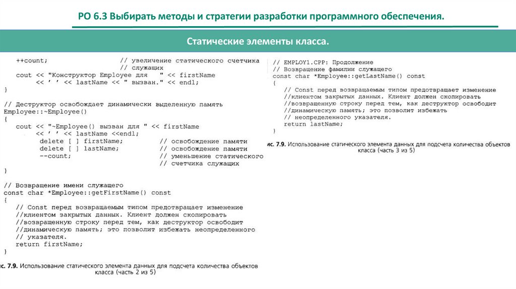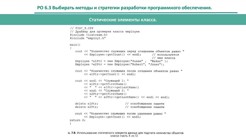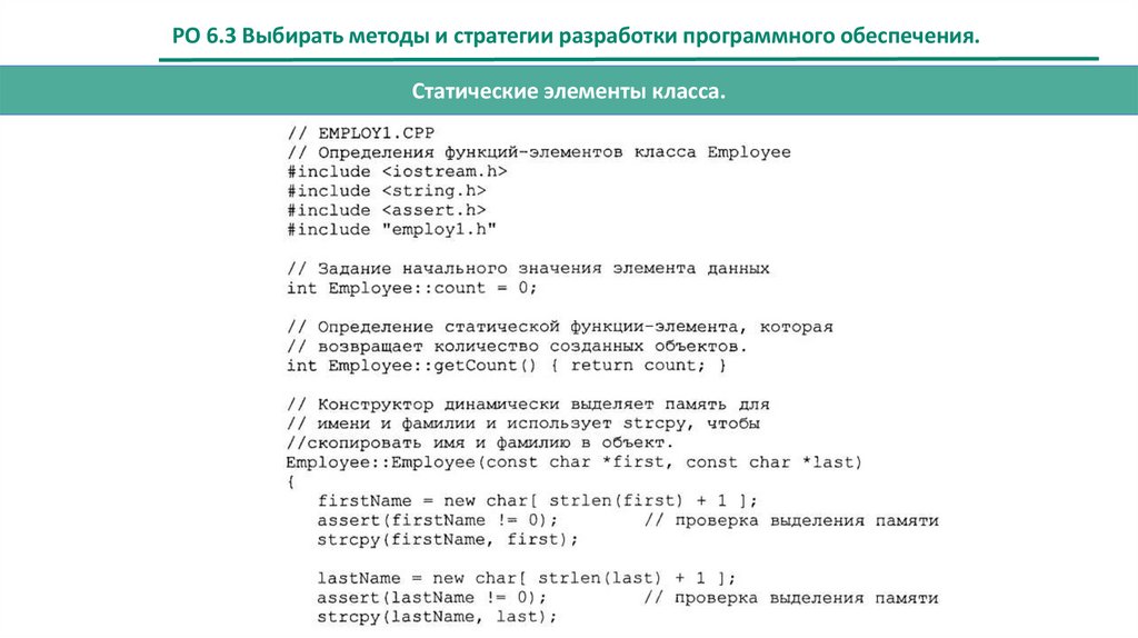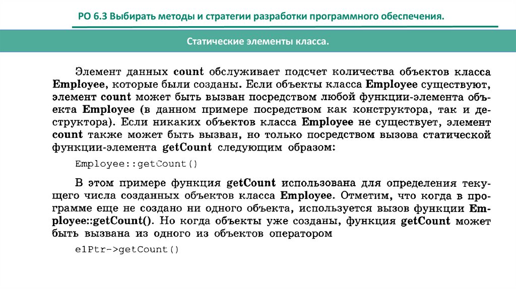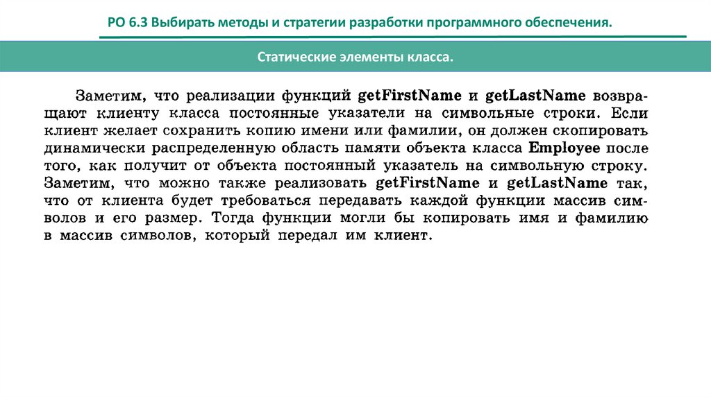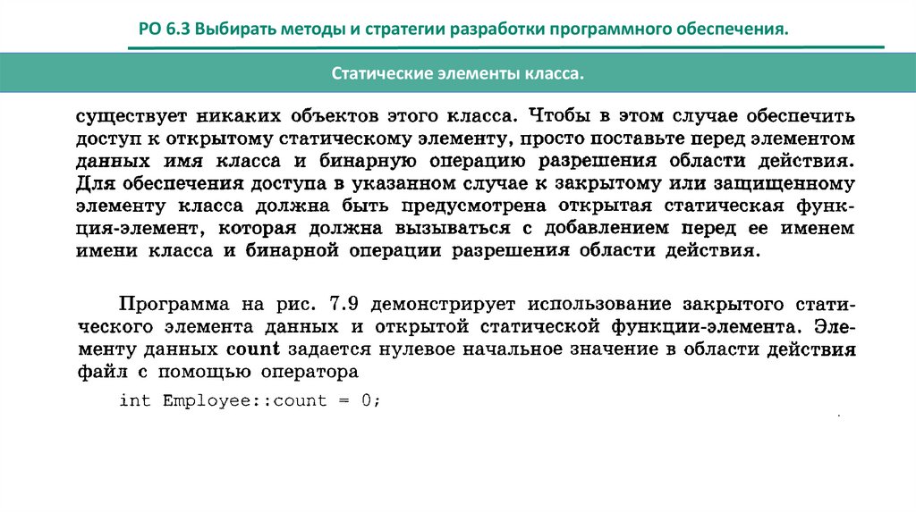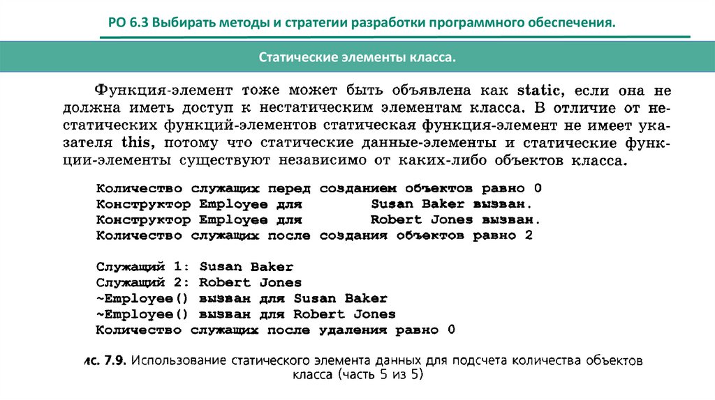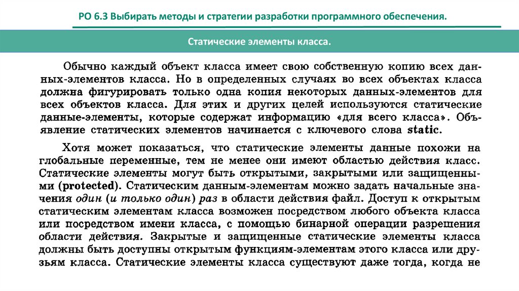 РО 6.3 Выбирать методы и стратегии разработки программного обеспечения.Статические элементы класса.