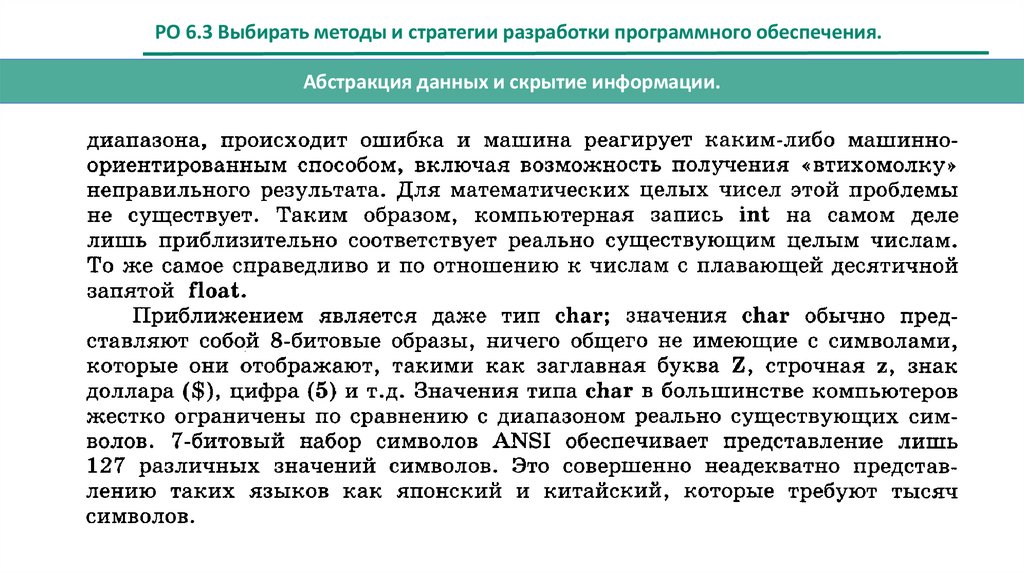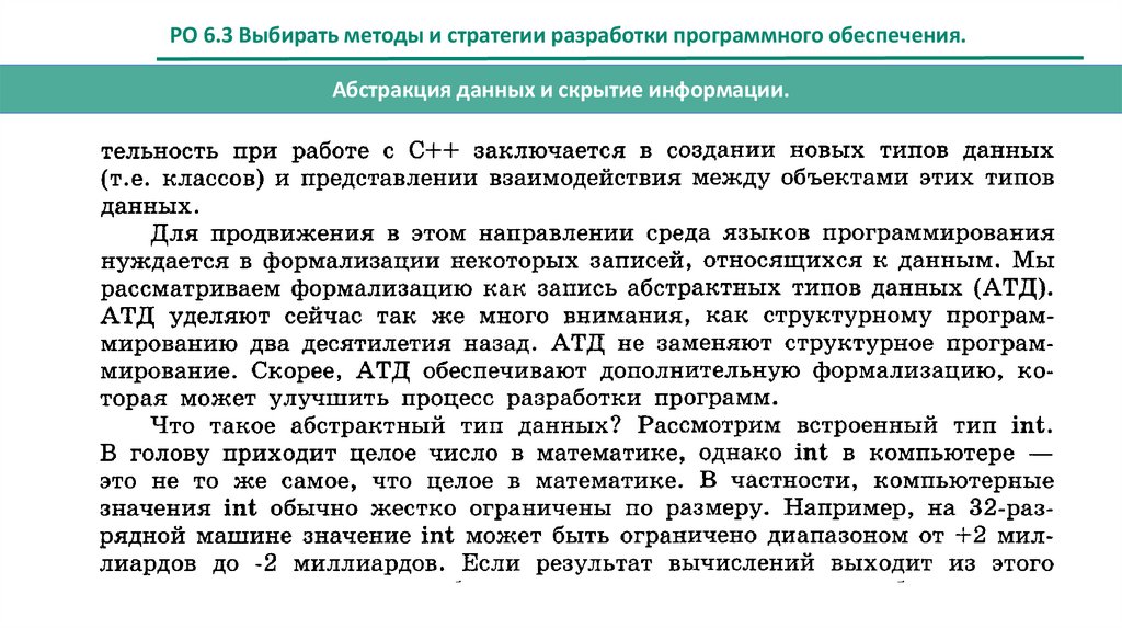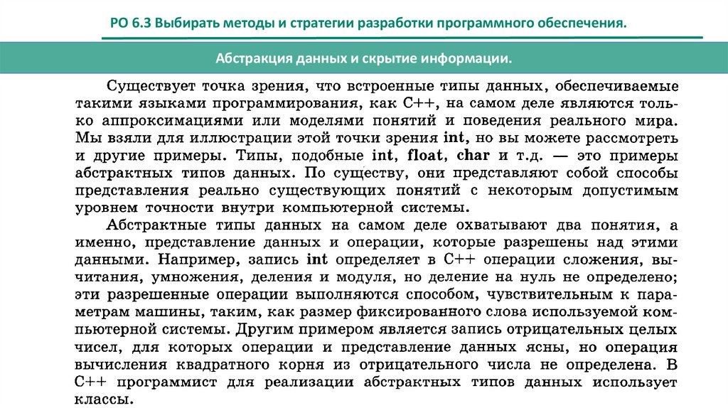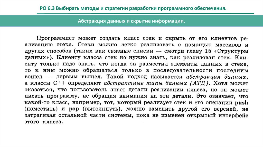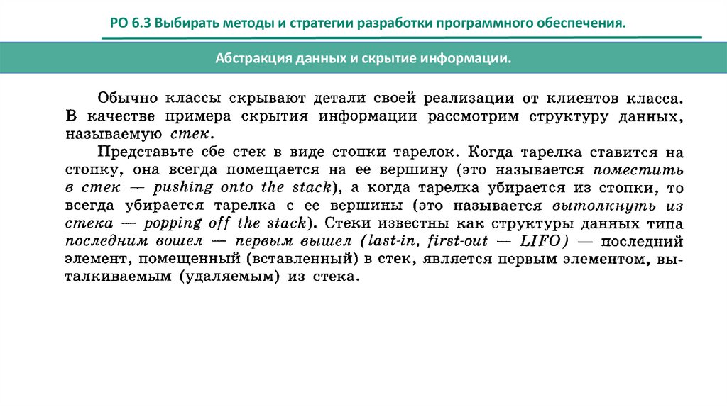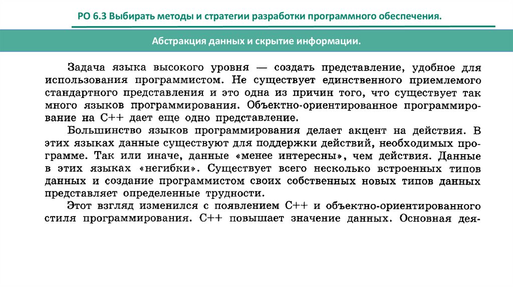 РО 6.3 Выбирать методы и стратегии разработки программного обеспечения.Абстракция данных и скрытие информации.