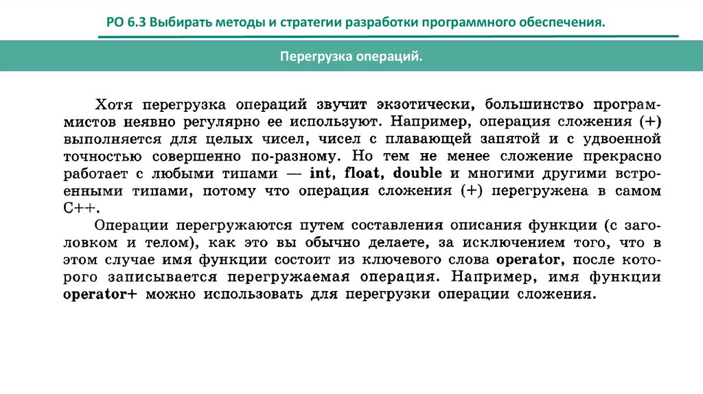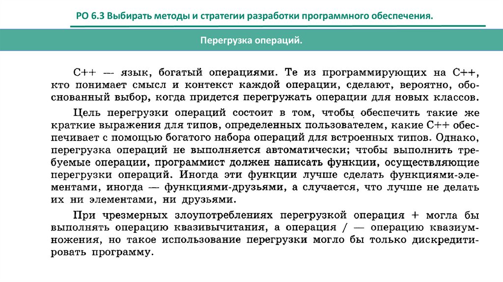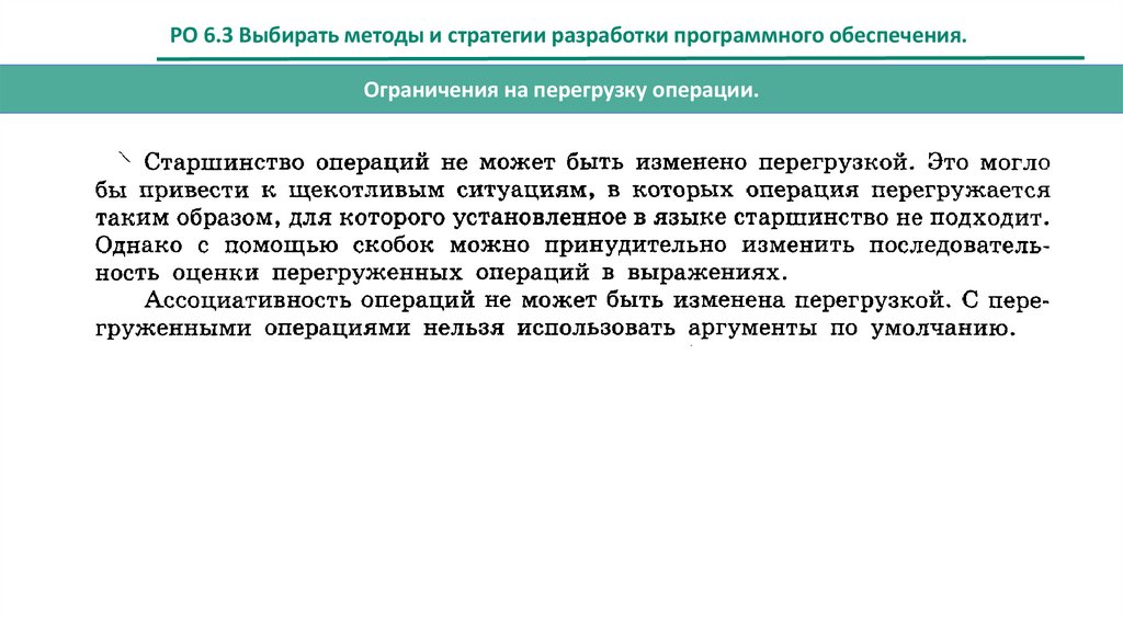 РО 6.3 Выбирать методы и стратегии разработки программного обеспечения.Ограничения на перегрузку операции.