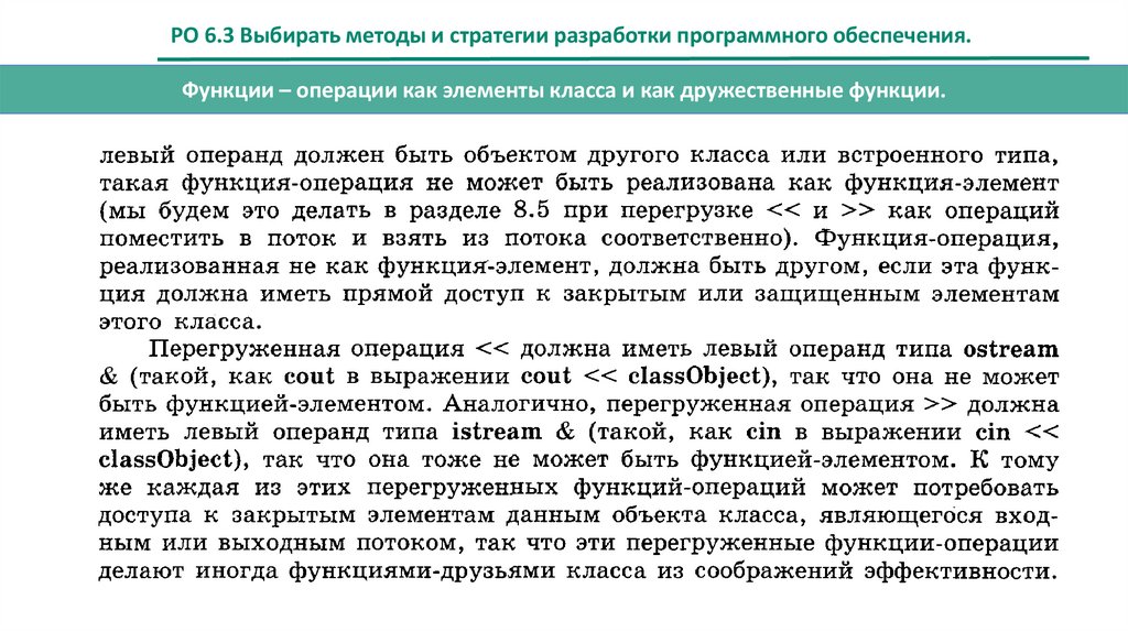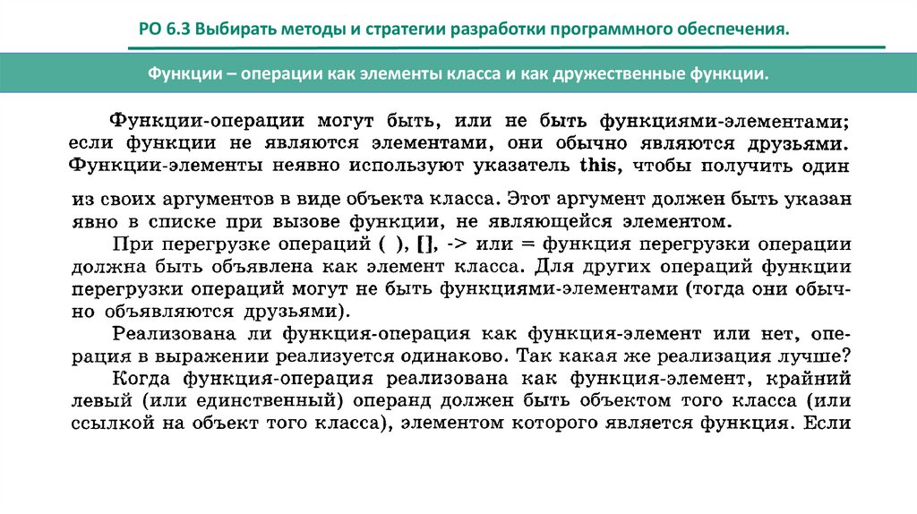 РО 6.3 Выбирать методы и стратегии разработки программного обеспечения.Функции – операции как элементы класса и как дружественные функции.